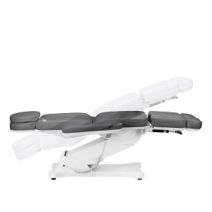 Fotel doskonale przystosowany jest do wykonywania zabiegów podologicznych – dzielony podnóżek ułatwia komfortowe przeprowadzenie usług, pozwalając na niezależne układanie pozycji nóg. Kąty, pod jakimi znajdują się jego części, regulowane są manualnie. Specjalnie zaprojektowany mechanizm pozwala na odchylanie podnóżków również na boki. Wysunięcie podnóżka również można dostosowywać, co zapewni lepsze podparcie wyższym użytkownikom. Wszystkie te cechy zapewniają wysoki komfort korzystania.