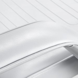Fotel wypełniony jest pianką o odpowiedniej twardości i pokryty półmatową imitacją skóry w odcieniach bieli. Dzięki użyciu takiego materiału, sprzęt jest komfortowy w użytkowaniu, odporny na wilgoć oraz łatwy w czyszczeniu. Odpowiednio wyprofilowane obszycia nadają ergonomiczny kształt siedzisku. Solidna konstrukcja gwarantuje trwałość oraz stabilność. Prosty design i klasyczna kolorystyka pozwalają mu wpasować się w każde wnętrze.