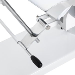 Przy pomocy specjalnych dźwigni możliwa jest bezstopniowa regulacja kątów, pod którymi znajdują się podnóżek i oparcie. Pozwala to na optymalne dostosowanie ustawień do indywidualnych potrzeb, dla prawidłowego i wygodnego wykonywania zabiegów oraz komfortu użytkowania. Fotel można rozłożyć aż do pozycji leżanki, co znacząco zwiększa jego funkcjonalność zarówno podczas zabiegów na twarz, jak i ciało.