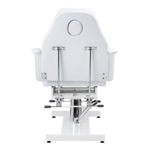 Wysokość fotela można dostosowywać w zakresie 62-75 cm bez użycia rąk za pomocą pompy hydraulicznej. Pozwala to na komfortowe korzystanie ze sprzętu osobom o różnym wzroście i umożliwia dostosowanie go do indywidualnych potrzeb zarówno klienta, jak i osoby wykonującej zabieg. Zastosowany mechanizm jest bardzo trwały i niezawodny. Dzięki otworowi w zagłówku, który jest ukryty pod odpowiednio wyprofilowaną poduszką, fotel doskonale sprawdzi się również przy zabiegach przeprowadzanych na plecach, takich jak masaże.