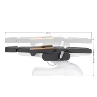 Dość szerokie siedzisko zapewni wygodę w trakcie długich zabiegów. Podłokietniki są ruchome w zakresie 180º, dzięki czemu ułatwiają sprawne zajęcie miejsca na fotelu i zapewniają komfortowy dostęp osobie wykonującej zabieg. W razie potrzeby możliwy jest łatwy i szybki ich demontaż.