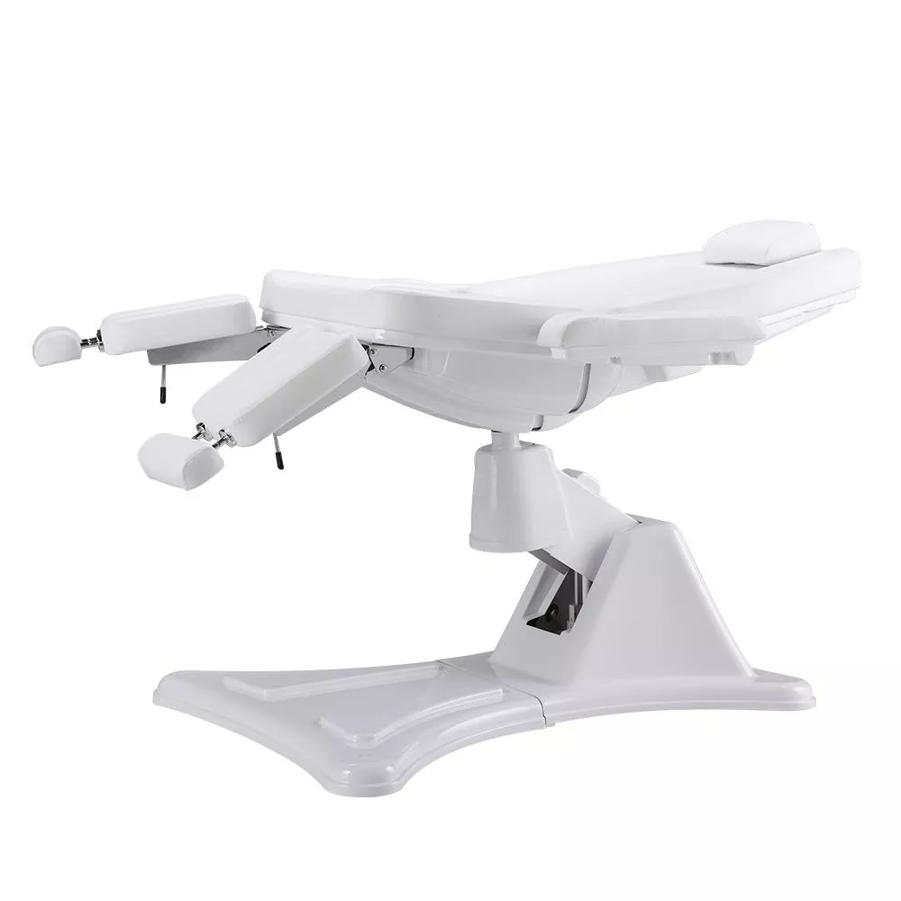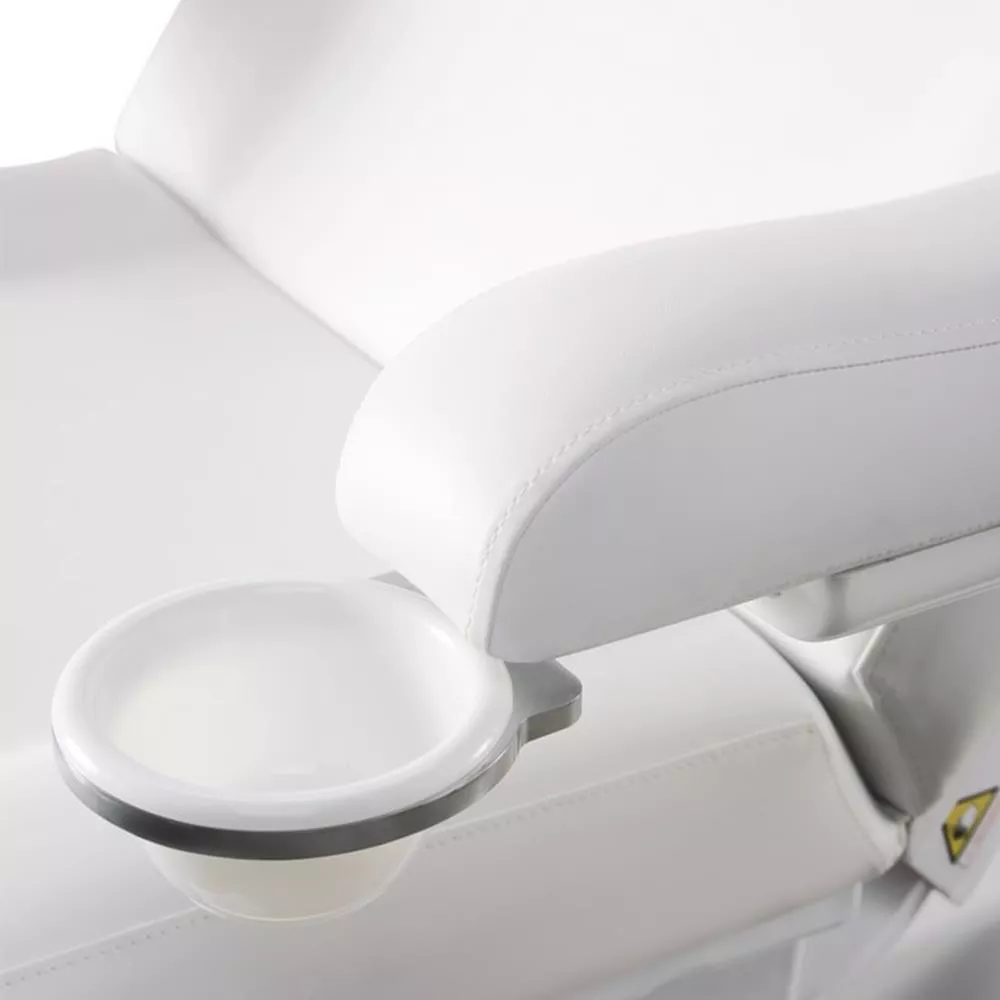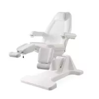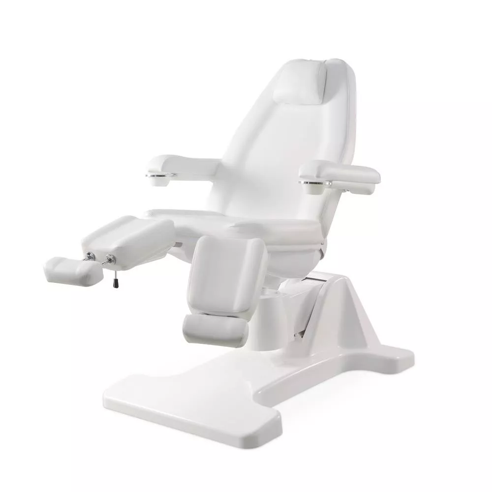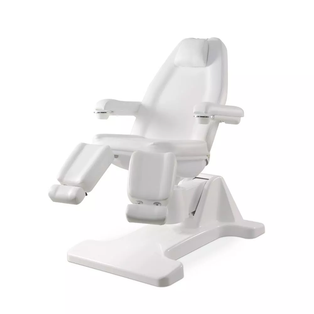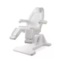 Możliwość konfiguracji fotela adekwatnie do potrzeb salonu. Szeroki wybór rodzaju tapicerki – specjalistyczna kosmetyczna lub gładka medyczna – oraz jej kolorystyki. Posiada regulację wysokości, oparcia, podnóżków.
