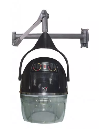 Wisząca wersja suszarki hełmowej Fox Air wyróżnia się wygodą i prostotą obsługi. Dzięki wysięgnikowi montowanemu do ściany nie zabiera dużo miejsca w salonie. Dzięki podgrzewaniu włosów suszaką hełmową, znacznie skracamy czas zabiegów trwałej ondulacji, koloryzacji czy kuracji pielęgnacyjnych. Długą żywotność zawdzięcza wykonanemu ze stali nierdzewnej elemenowi grzewczemu. Dostępna jest w następujących wariantach kolorystycznych: czarnym lub białym.