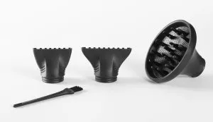 - W zestawie dwie dysze (65*12mm i 60*16mm) oraz dyfuzor, które umożliwiają różnorodne stylizacje.