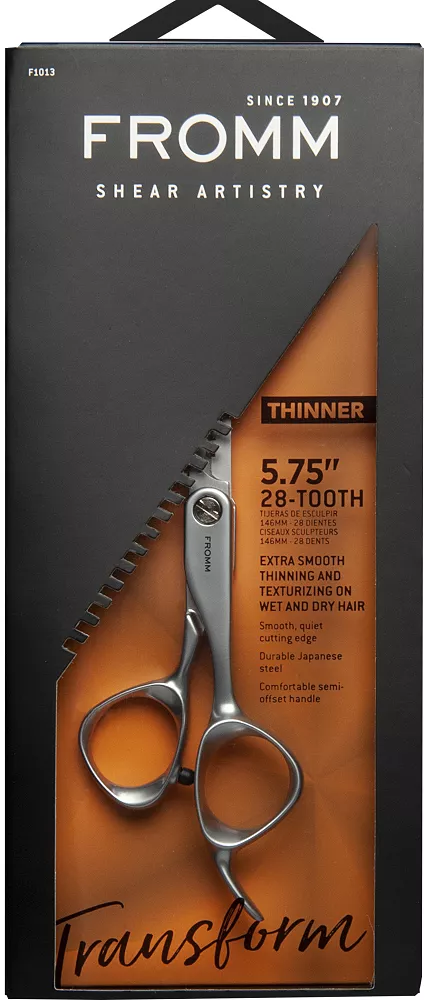 Nożyczki degażówki Fromm Transform 5.75, 28T Shear Artistry to niezbędne narzędzie dla każdego fryzjera, który ceni sobie precyzję, wygodę oraz trwałość. Zamów już dziś i przekonaj się, jak łatwo możesz osiągnąć profesjonalne efekty w stylizacji włosów!