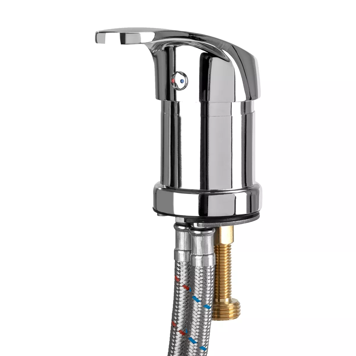 Bateria deszczownica z mieszaczem, przeznaczona do myjni fryzjerskich, stanowi nieodzowny element profesjonalnego wyposażenia salonu. Ułatwia wygodne podłączenie wody do myjni i zapewnia komfort zarówno fryzjerowi, jak i klientowi. Dzięki dołączonym do zestawu wężom przyłączeniowym z oplotem stalowym, bateria charakteryzuje się wysoką trwałością i odpornością na ścieranie.