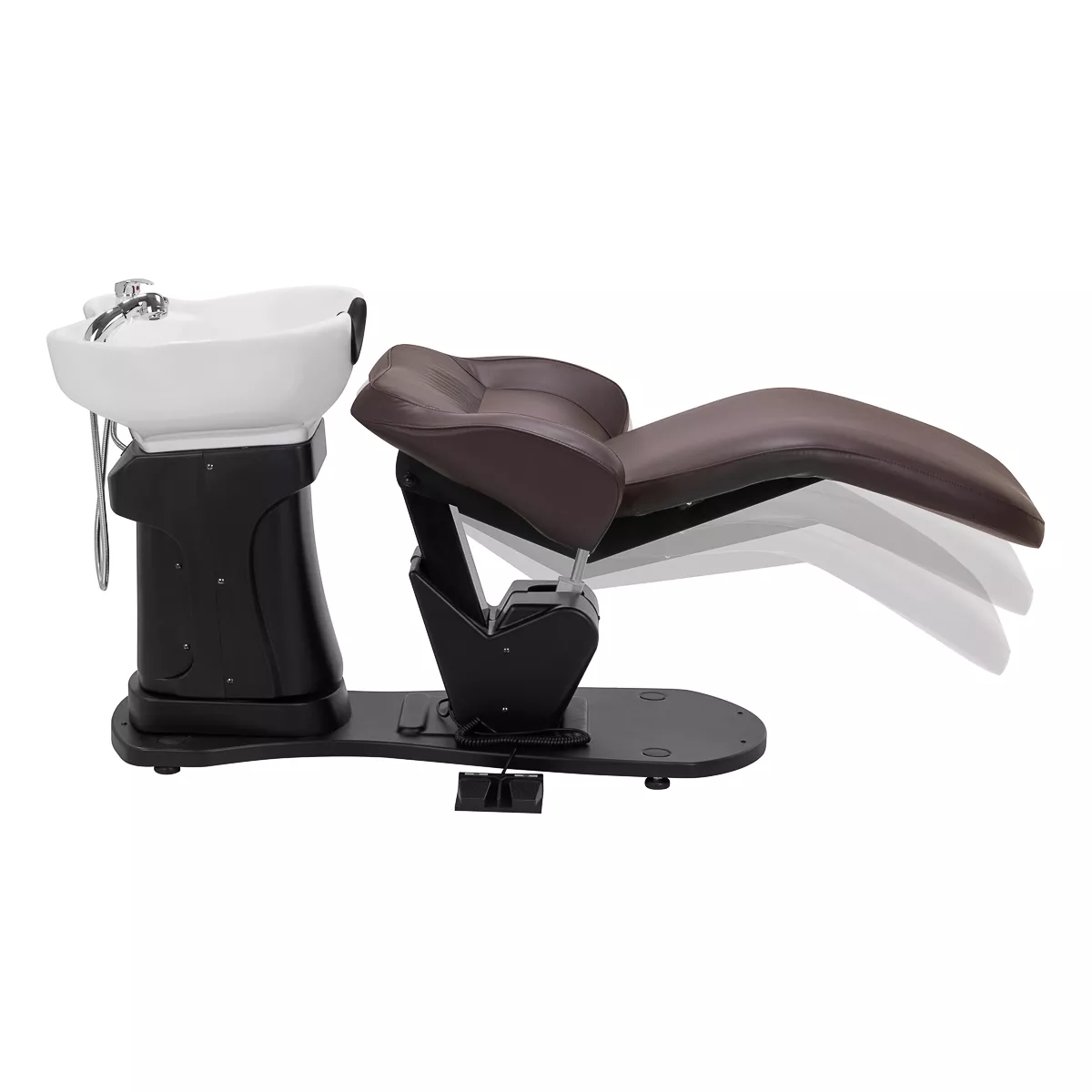 Regulowane siłownikiem elektrycznym oparcie i podnóżek rozkładają się synchronicznie, co pozwala zapewnić ergonomiczną pozycję dostosowaną do potrzeb klienta. Sprzęt można rozłożyć do pozycji leżącej, gwarantując optymalne wsparcie dla pleców i nóg. Zmniejsza się w ten sposób napięcie mięśniowe, co zapewnia komfort nawet podczas długotrwałych zabiegów pielęgnacyjnych. Kątami nachylenia steruje się przy użyciu napędu nożnego – odpowiednim przyciskiem można podnieść bądź opuścić. Takie rozwiązanie to nie tylko wyjątkowy komfort, ale także praktyczność, co sprawia, że nasze produkty doskonale spełniają oczekiwania nawet najbardziej wymagających użytkowników.