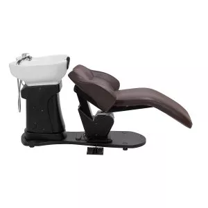 Myjnia fryzjerska Gabbiano TRYCHO została zaprojektowana z myślą o wykonywaniu czasochłonnych zabiegów pielęgnacyjnych czy koloryzacji oraz zapewnieniu klientowi wygodnej pozycji podczas dłuższych procedur. Odpowiednio wyprofilowany fotel wypełniony trwałą pianką zapewnia wysoki komfort użytkowania, a tapicerowane podłokietniki pozwalają na prawidłowe ułożenie barków klienta. Oparcie umieszczone pod optymalnym kątem sprzyja doskonałemu wsparciu kręgosłupa. Pokrycie ze skóry syntetycznej w odcieniach brązgwarantuje wieloletnią wytrzymałość oraz łatwość czyszczenia. Oryginalny, elegancki wygląd myjni nadaje wnętrzom niepowtarzalnego wyrazu. Podstawa dodaje stabilności i subtelnie podkreśla stylowy charakter myjni. W zestawie znajduje się kompletna armatura w odcieniach chromu, w tym bateria, słuchawka prysznicowa oraz dedykowane węże, aby zapewnić całkowity zestaw narzędzi do pracy.