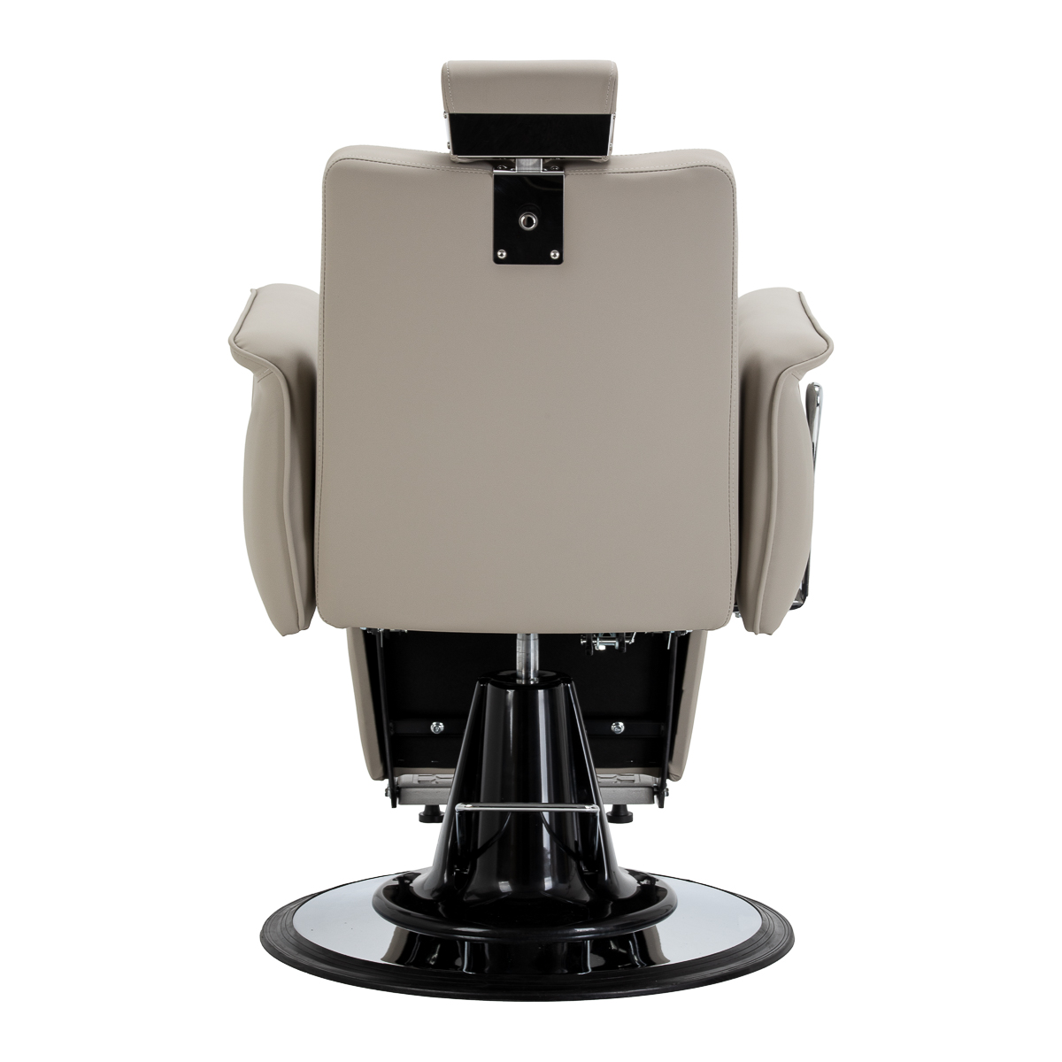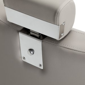 Wydajny podnośnik hydrauliczny umożliwia płynną regulację wysokości siedziska w zakresie 55-67 cm, nawet gdy klient już siedzi w fotelu. Zapewnia to ergonomiczne warunki pracy i ułatwia dopasowanie ustawień do wzrostu zarówno klienta, jak i barbera. Odchylane oparcie oraz regulowany podnóżek pozwalają na ułożenie klienta w wygodnej, półleżącej pozycji, zwiększając wygodę podczas wybranych usług. Regulowany zagłówek zapewnia stabilne podparcie głowy i karku.
