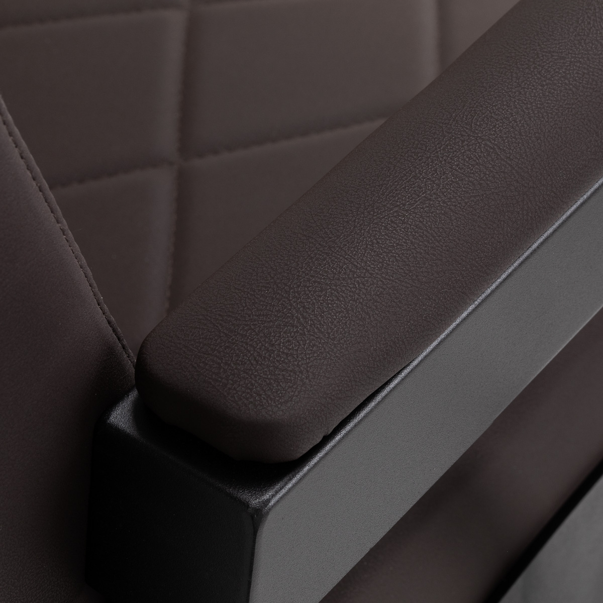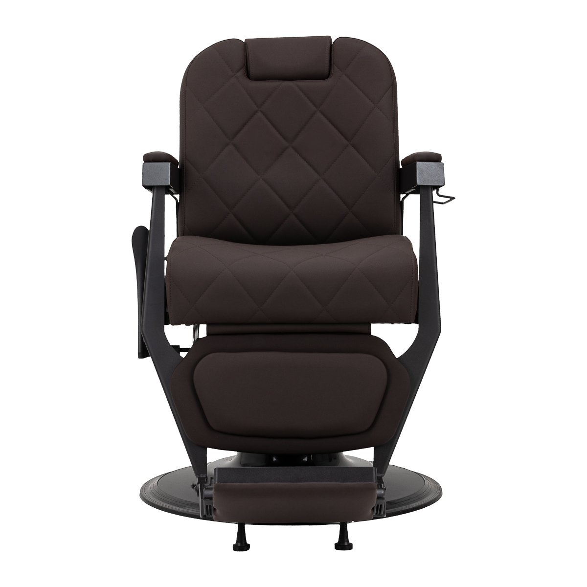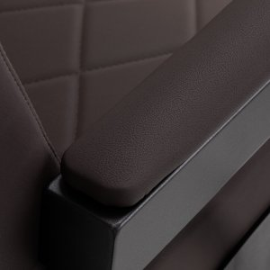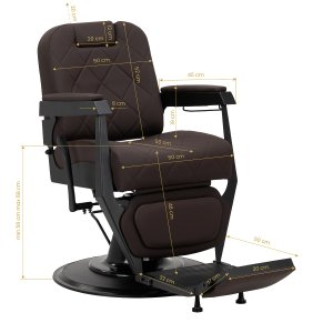 Stabilna konstrukcja zapewnia bezpieczeństwo i długą żywotność mebla. Siedzisko wypełnione pianką odporną na odkształcenia oraz obicie z miękkiej skóry syntetycznej zapewniają meblowi trwałość i wygodę. Odporne na wilgoć materiały są nie tylko wytrzymałe, ale również łatwe w czyszczeniu. Brązowa tapicerka w połączeniu z czarną ramą nadaje fotelowi nowoczesny i profesjonalny wygląd, a minimalistyczny styl pozwala mu wpasować się w wystrój każdego salonu barberskiego.