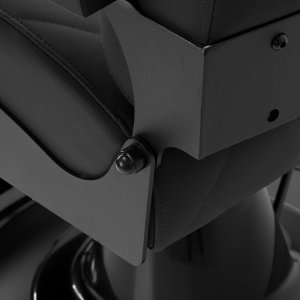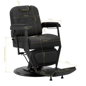 Stabilna konstrukcja zapewnia bezpieczeństwo i długą żywotność mebla. Siedzisko wypełnione pianką odporną na odkształcenia oraz obicie z miękkiej skóry syntetycznej zapewniają meblowi trwałość i wygodę. Odporne na wilgoć materiały są nie tylko wytrzymałe, ale również łatwe w czyszczeniu. Czarna tapicerka w połączeniu z czarną ramą nadaje fotelowi nowoczesny i profesjonalny wygląd, a minimalistyczny styl pozwala mu wpasować się w wystrój każdego salonu barberskiego.