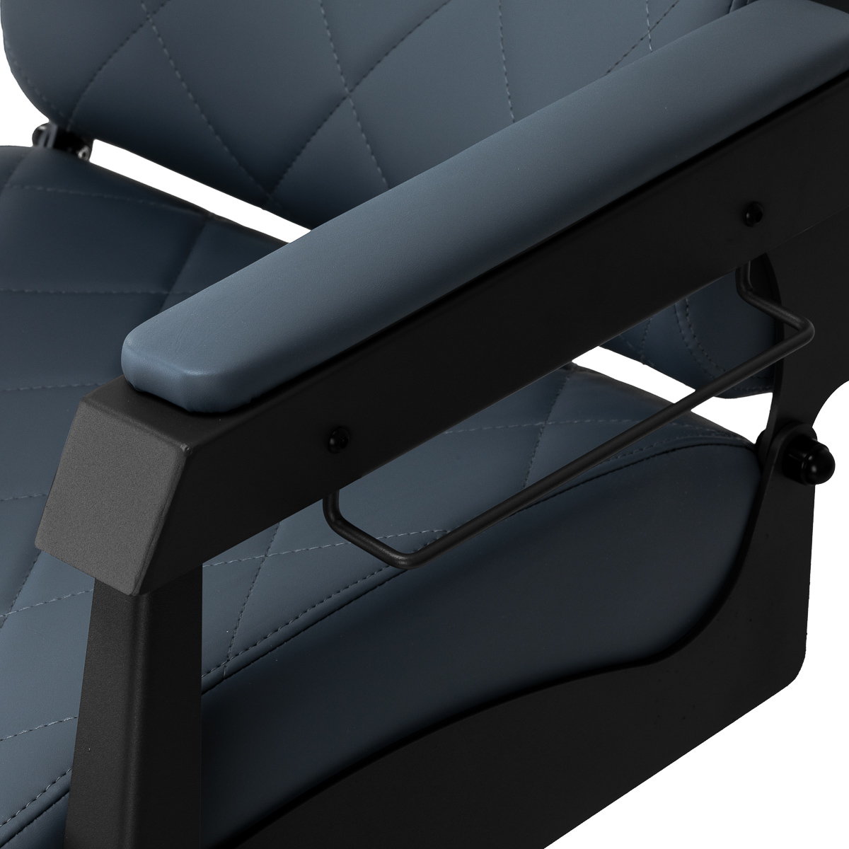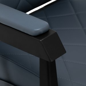 Stabilna konstrukcja zapewnia bezpieczeństwo i długą żywotność mebla. Siedzisko wypełnione pianką odporną na odkształcenia oraz obicie z miękkiej, matowej skóry syntetycznej zapewniają meblowi trwałość i wygodę. Odporne na wilgoć materiały są nie tylko wytrzymałe, ale również łatwe w czyszczeniu. Grafitowa tapicerka w połączeniu z czarną ramą nadaje fotelowi nowoczesny i profesjonalny wygląd, a minimalistyczny styl pozwala mu wpasować się w wystrój każdego salonu barberskiego.