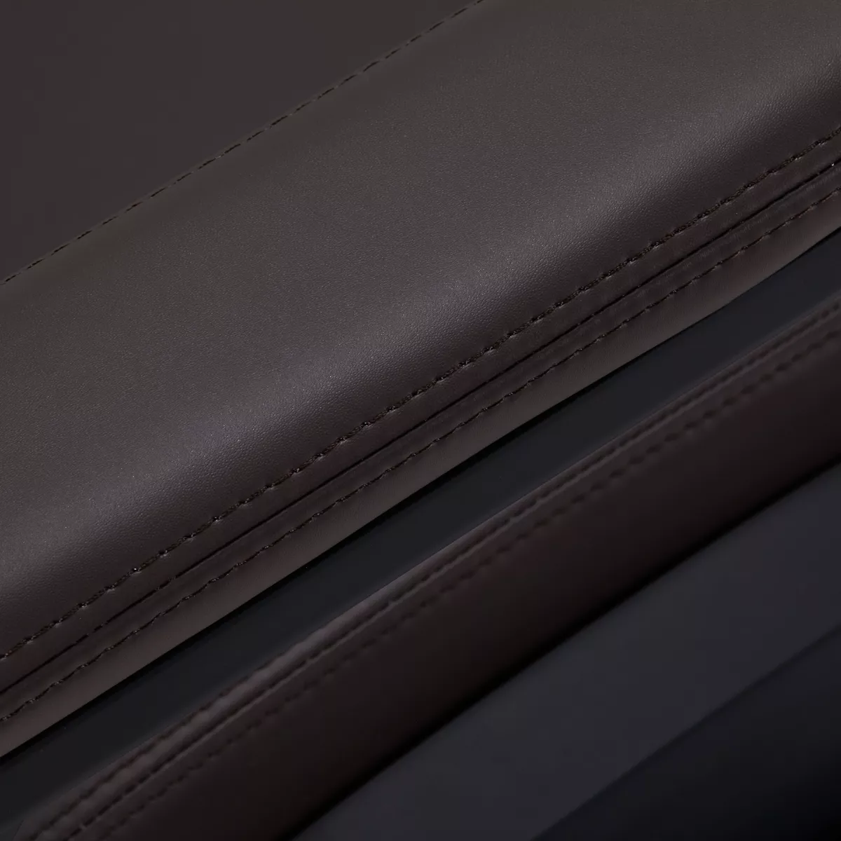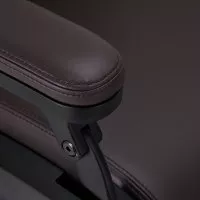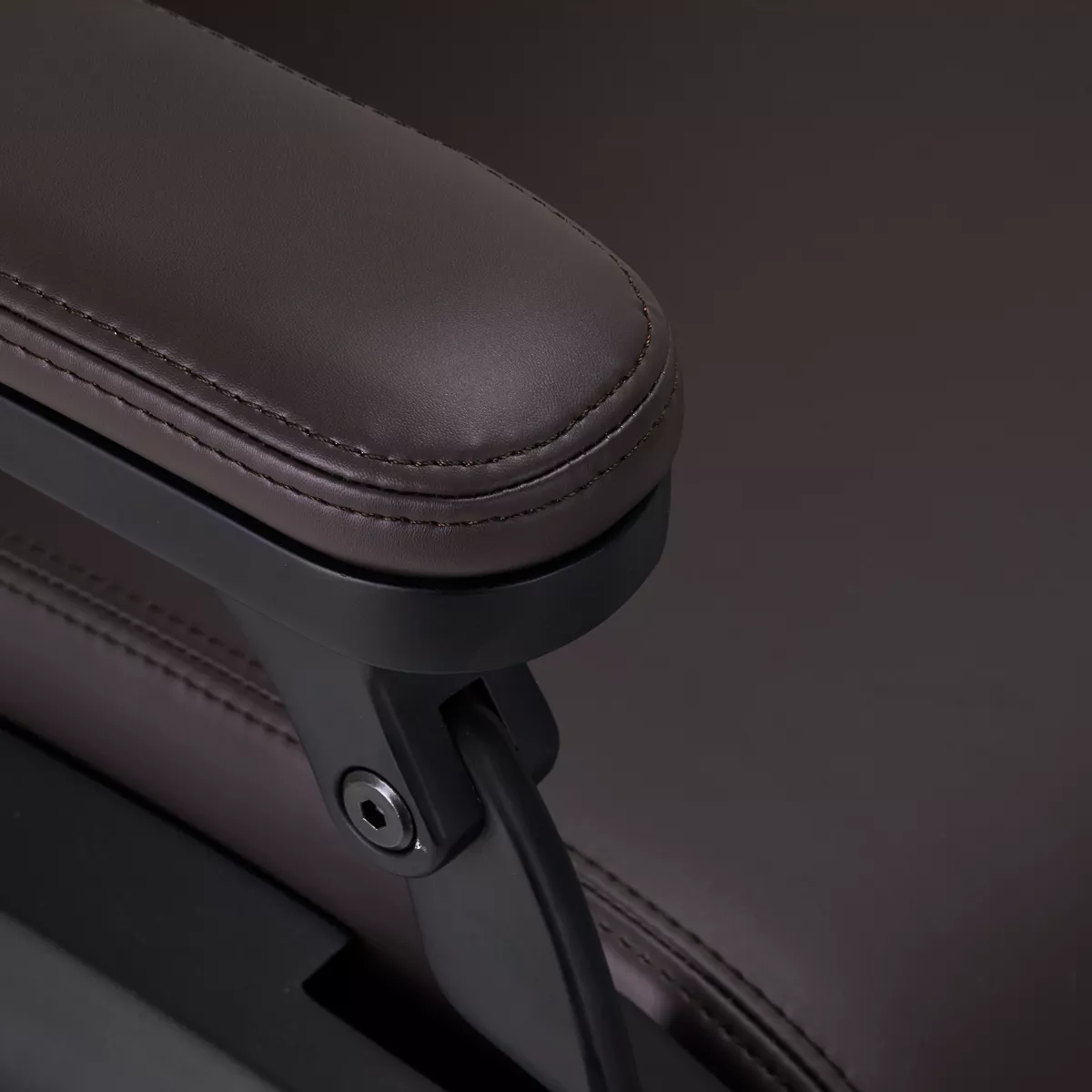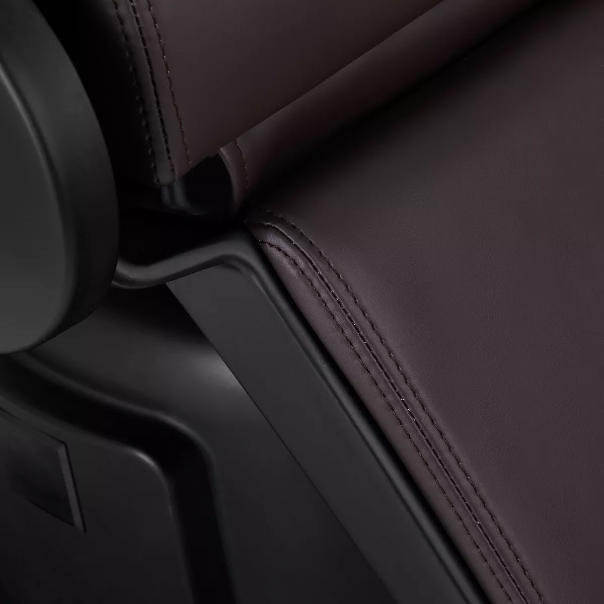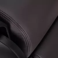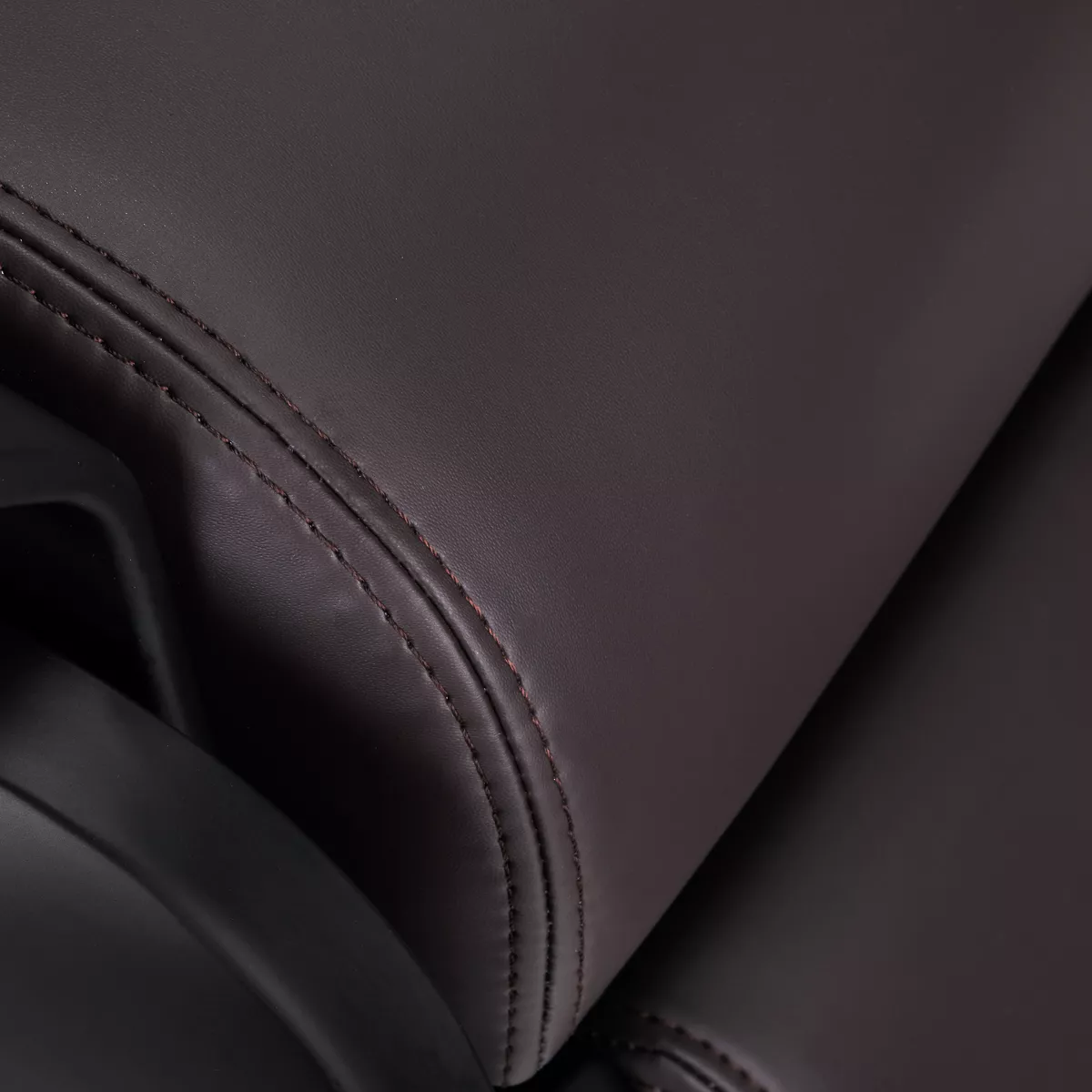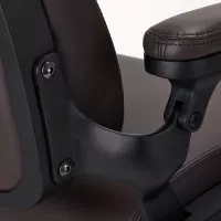 Solidna konstrukcja podstawy zapewnia stabilność i trwałość mebla. Przyjemne w dotyku obicie wykonane z syntetycznej skóry w odcieniach brązu jest estetyczne, odporne na wilgoć i łatwe do czyszczenia. Wszystkie te elementy łączą się, tworząc mebel, który nie tylko doskonale spełnia swoją funkcję, ale także dodaje salonowi elegancji i profesjonalizmu.