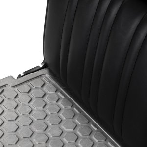 Komfortowe siedzisko zapewnia klientowi wygodę podczas różnorodnych usług. Odpowiednio wyprofilowane oparcie sprzyja przyjęciu stabilnej, wygodnej pozycji i zapewnia solidne podparcie pleców, co ma szczególne znaczenie przy dłuższych zabiegach. Mechanizm pełnego obrotu zwiększa swobodę ruchów i przekłada się na większą efektywność pracy. Tapicerowane podłokietniki umożliwiają prawidłowe ułożenie barków, zapobiegając unoszeniu ramion i garbieniu się klienta, co wyraźnie ułatwia barberowi wykonywanie precyzyjnych zabiegów.