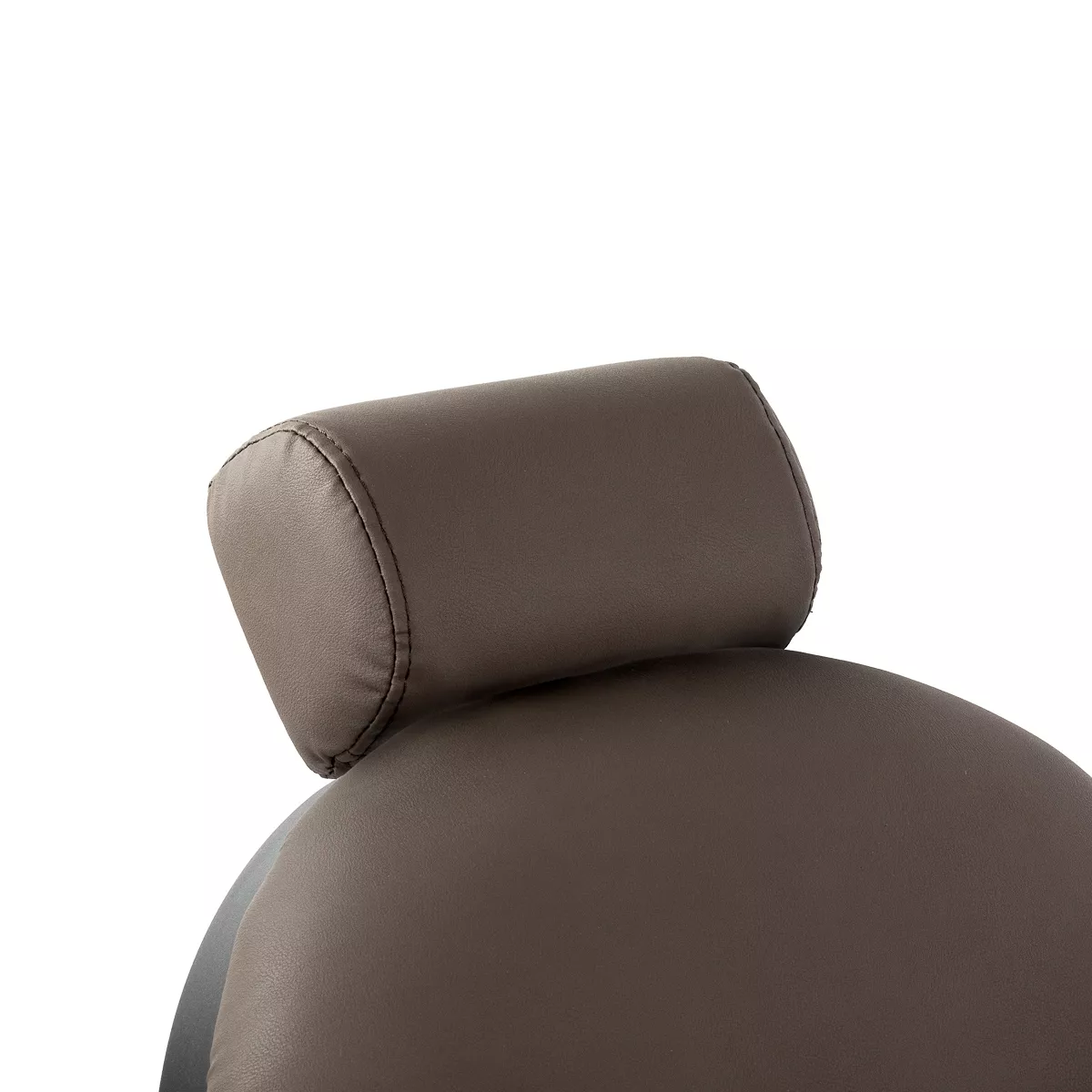 Trwały podnośnik hydrauliczny pozwala na swobodną regulację wysokości siedziska w granicach 56-70 cm, nawet w momencie, gdy klient siedzi na fotelu. Gwarantuje to ergonomię pracy oraz zapewnia możliwość dopasowania poziomu siedziska do wzrostu zarówno klienta, jak i osoby wykonującej zabieg. Fotel posiada odchylane oparcie oraz regulowany podnóżek, dzięki czemu możliwe jest ułożenie klienta w dogodnej, półleżącej pozycji. Takie ustawienie gwarantuje lepszy dostęp podczas niektórych usług. Dodatkowo wysuwany o 20 cm zagłówek zapewnia doskonałe podparcie głowy, dzięki możliwości dopasowania do indywidualnych potrzeb.