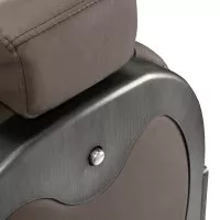 Trwały podnośnik hydrauliczny pozwala na swobodną regulację wysokości siedziska w granicach 56-70 cm, nawet w momencie, gdy klient siedzi na fotelu. Gwarantuje to ergonomię pracy oraz zapewnia możliwość dopasowania poziomu siedziska do wzrostu zarówno klienta, jak i osoby wykonującej zabieg. Fotel posiada odchylane oparcie oraz regulowany podnóżek, dzięki czemu możliwe jest ułożenie klienta w dogodnej, półleżącej pozycji. Takie ustawienie gwarantuje lepszy dostęp podczas niektórych usług. Dodatkowo wysuwany o 20 cm zagłówek zapewnia doskonałe podparcie głowy, dzięki możliwości dopasowania do indywidualnych potrzeb.