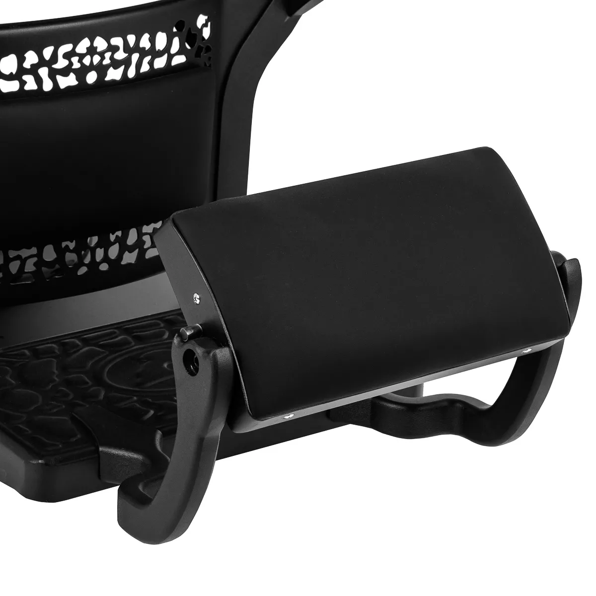 Komfortowe siedzisko wypełnione pianką gwarantuje klientowi wygodę w trakcie różnorodnych usług. Wyprofilowane oparcie pozwala na zajęcie dogodnej pozycji, zapewniając doskonałe wsparcie pleców, co jest istotne szczególnie podczas dłuższych zabiegów. Wyposażenie fotela w mechanizm pełnego obrotu sprawia, że praca staje się bardziej efektywna i wygodna. Tapicerowane podłokietniki umieszczone na odpowiedniej wysokości umożliwiają prawidłowe ułożenie barków klienta – sprawia to, że nie chowa głowy w ramionach ani się nie garbi – znacząco ułatwiając wykonywanie precyzyjnych zabiegów. Uchwyt na ręcznik pod podłokietnikiem znacznie wpływa na efektywność pracy. Otwór pomiędzy oparciem a siedziskiem ułatwia zachowanie czystości w salonie, pozwalając w łatwy sposób wymieść włosy z każdego zakamarka fotela. Usprawnia to przygotowanie stanowiska pracy pomiędzy klientami.