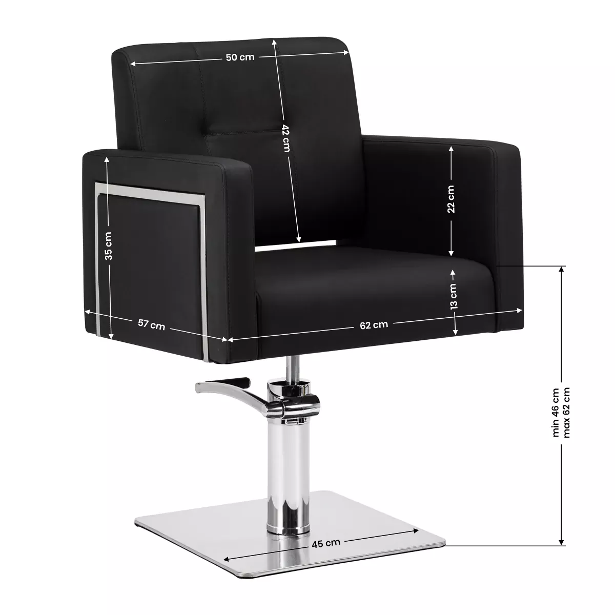 Odkryj komfort i elegancję w jednym dzięki fotelowi fryzjerskiemu Bergamo. Ten czarny, klasyczny fotel jest synonimem wygody i stylu, idealnie wpasowując się w estetykę każdego salonu fryzjerskiego.