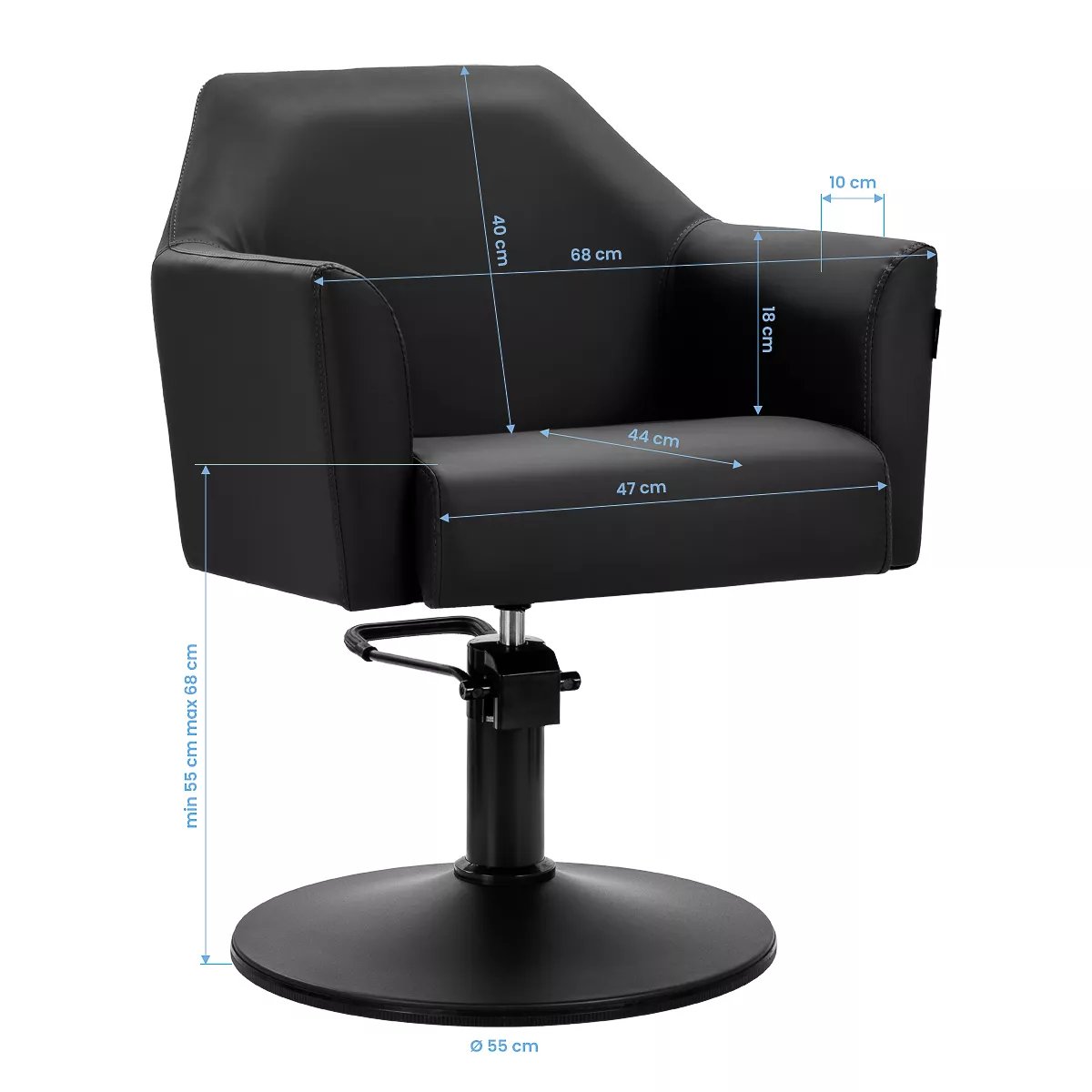 Fotel fryzjerski Gabbiano Davos to połączenie nowoczesnej funkcjonalności z ponadczasową estetyką. Wyposażony w solidny podnośnik hydrauliczny, umożliwia łatwą regulację wysokości, co ułatwia pracę stylisty. Ergonomiczne siedzisko i odpowiednio wyprofilowane podłokietniki gwarantują wygodę nawet podczas wielogodzinnych zabiegów, a minimalistyczny design nadaje fotelowi uniwersalny charakter, który z łatwością wpisze się w wystrój niemal każdego salonu.