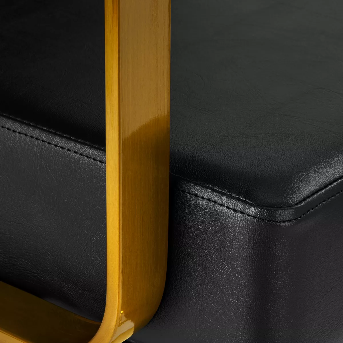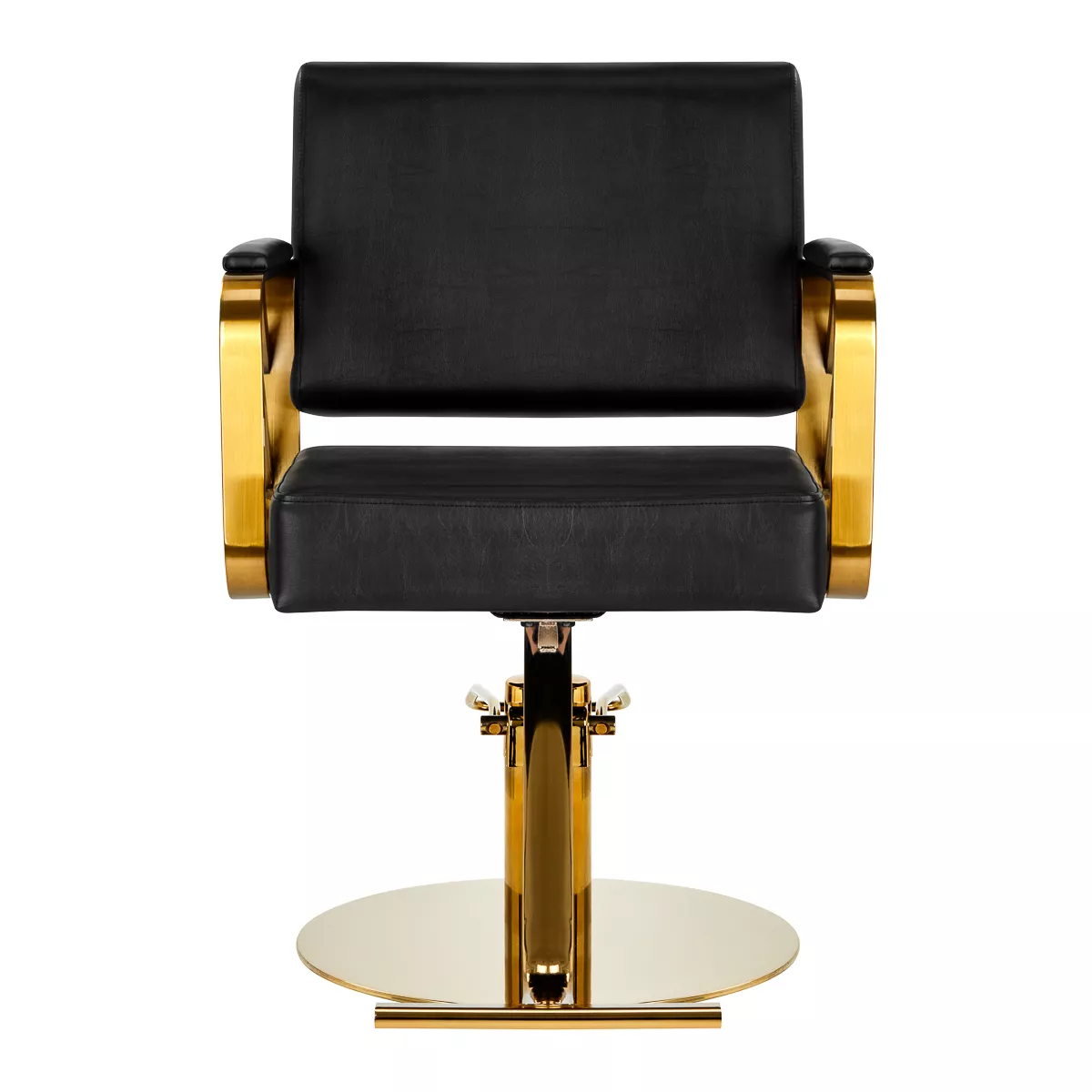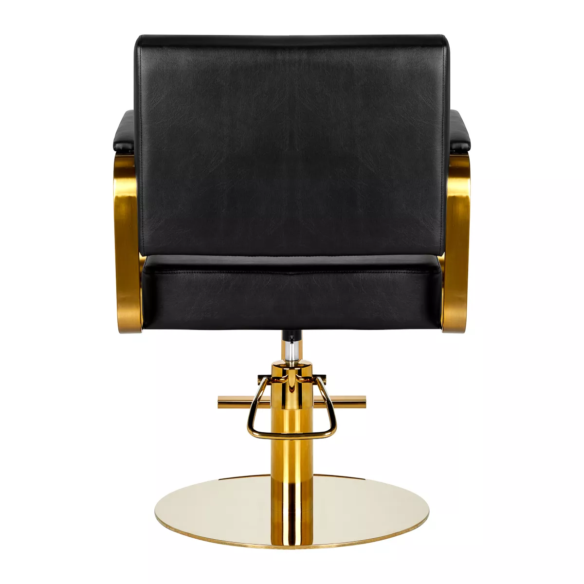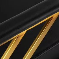 Wygodny mebel wypełniony jest trwałą, odporną na odkształcenia pianką, z kolei obicie wykonane jest z przyjemnej w dotyku skóry syntetycznej w odcieniach czerni. Zastosowane materiały zapewniają komfortowe użytkowanie mebla przez długi czas i sprawiają, że sprzęt jest odporny na wilgoć, wytrzymały oraz łatwy do czyszczenia. Ozdobne, geometryczne metalowe elementy w odcieniach złota na bokach fotela nadają meblowi wyraz ponadczasowej elegancji. Fotel fryzjerski Gabbiano B217 wyróżnia design, który nadaje mu wyjątkowy charakter i sprawia, że fotel będzie doskonale prezentować się w wielu eleganckich salonach.