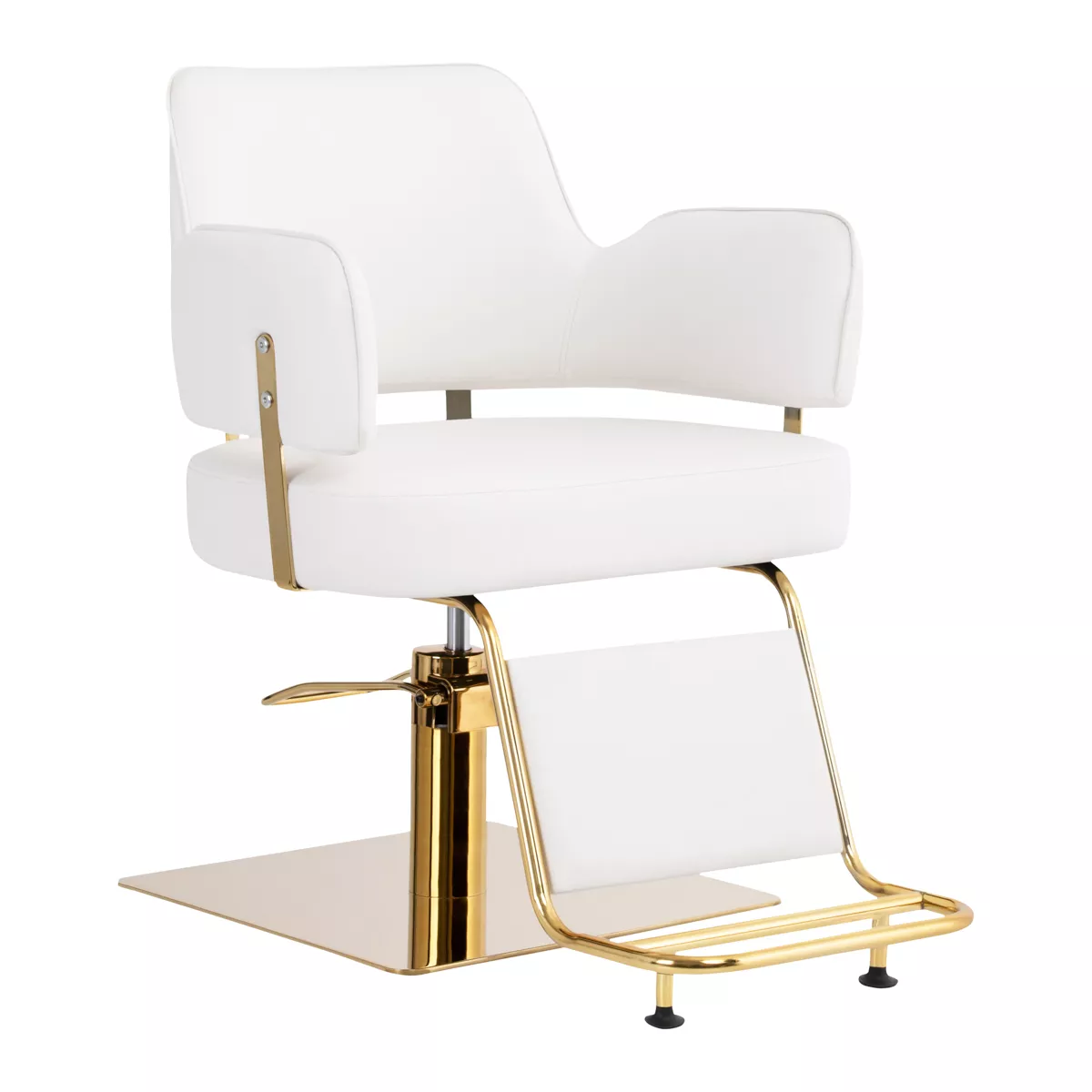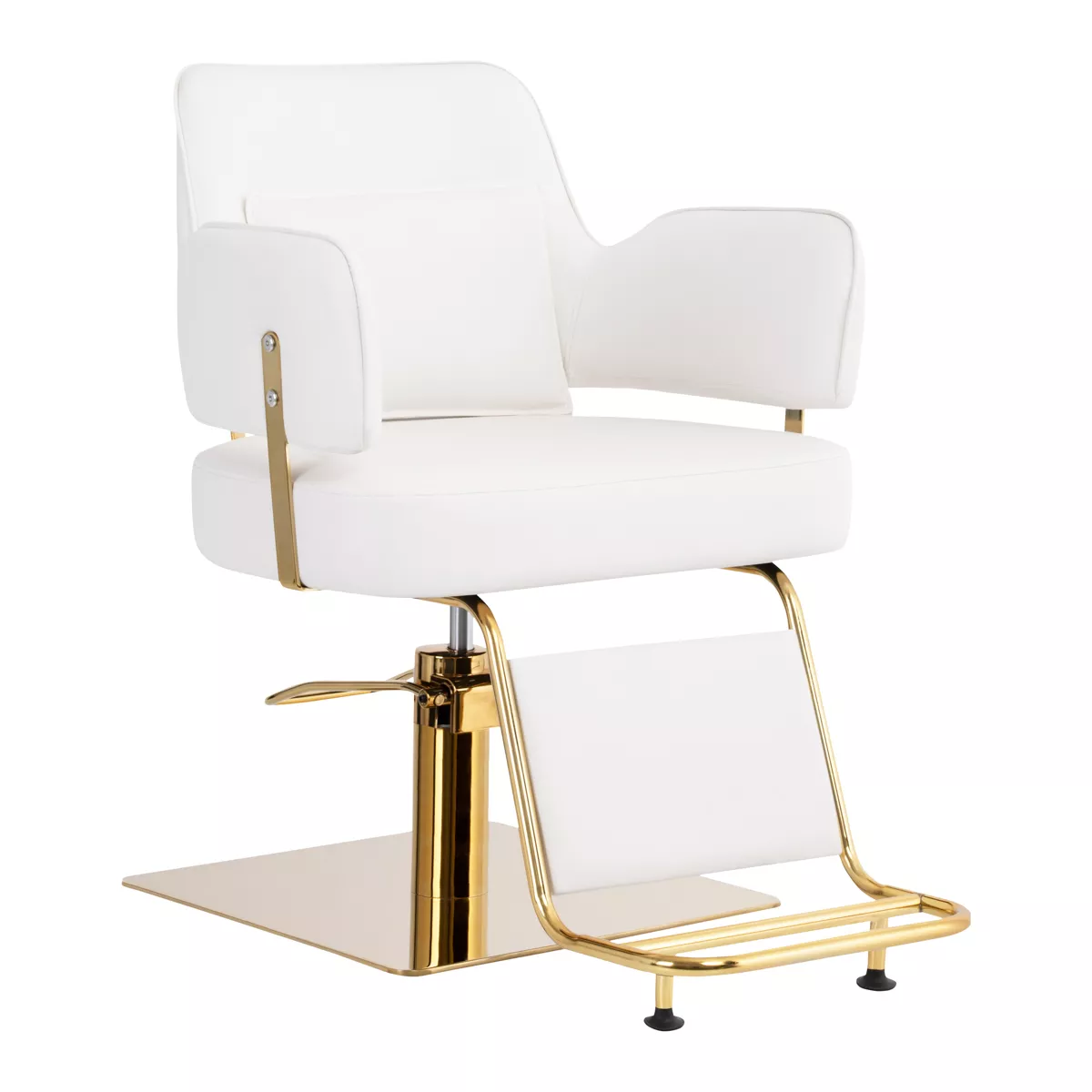 Odkryj luksus i wygodę z nowoczesnym fotelem fryzjerskim Gabbiano Linz w eleganckim połączeniu bieli i złota. Idealnie zaprojektowany dla nowoczesnych salonów, ten fotel nie tylko poprawi estetykę Twojego miejsca pracy, ale również zapewni najwyższy komfort Twoim klientom.