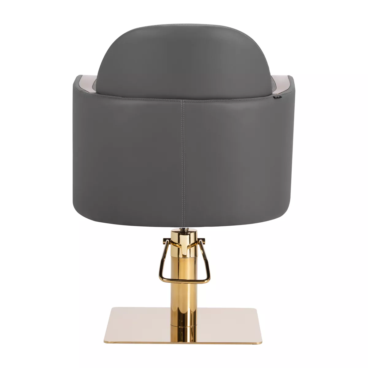 Fotel fryzjerski Gabbiano Malaga wyposażony w podnośnik hydrauliczny jest praktycznym meblem, który stanie się ozdobą salonu fryzjerskiego. Klasyczna kolorystyka i ozdobne elementy w odcieniach złota nadają mu elegancki wygląd. Wysoka funkcjonalność zapewni komfort zarówno fryzjerom, jak i jego użytkownikom.