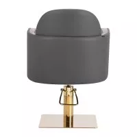 Solidna, kwadratowa podstawa zapewnia stabilność w trakcie użytkowania. Gładka powierzchnia sprawia, że element ten jest łatwy do utrzymania w czystości. Szerokie siedzisko, wypełnione odpowiednio twardą pianką, zapewnia wysoki komfort użytkowania i wygodę nawet podczas wielogodzinnych zabiegów. Podłokietniki znajdują się na odpowiedniej wysokości, dzięki czemu pozwalają na prawidłowe ułożenie barków klienta – sprawia to, że nie chowa głowy w ramionach ani się nie garbi – wyraźnie usprawniając zabiegi, w tym strzyżenie. Ułatwia to precyzyjne wykonywanie usług.
