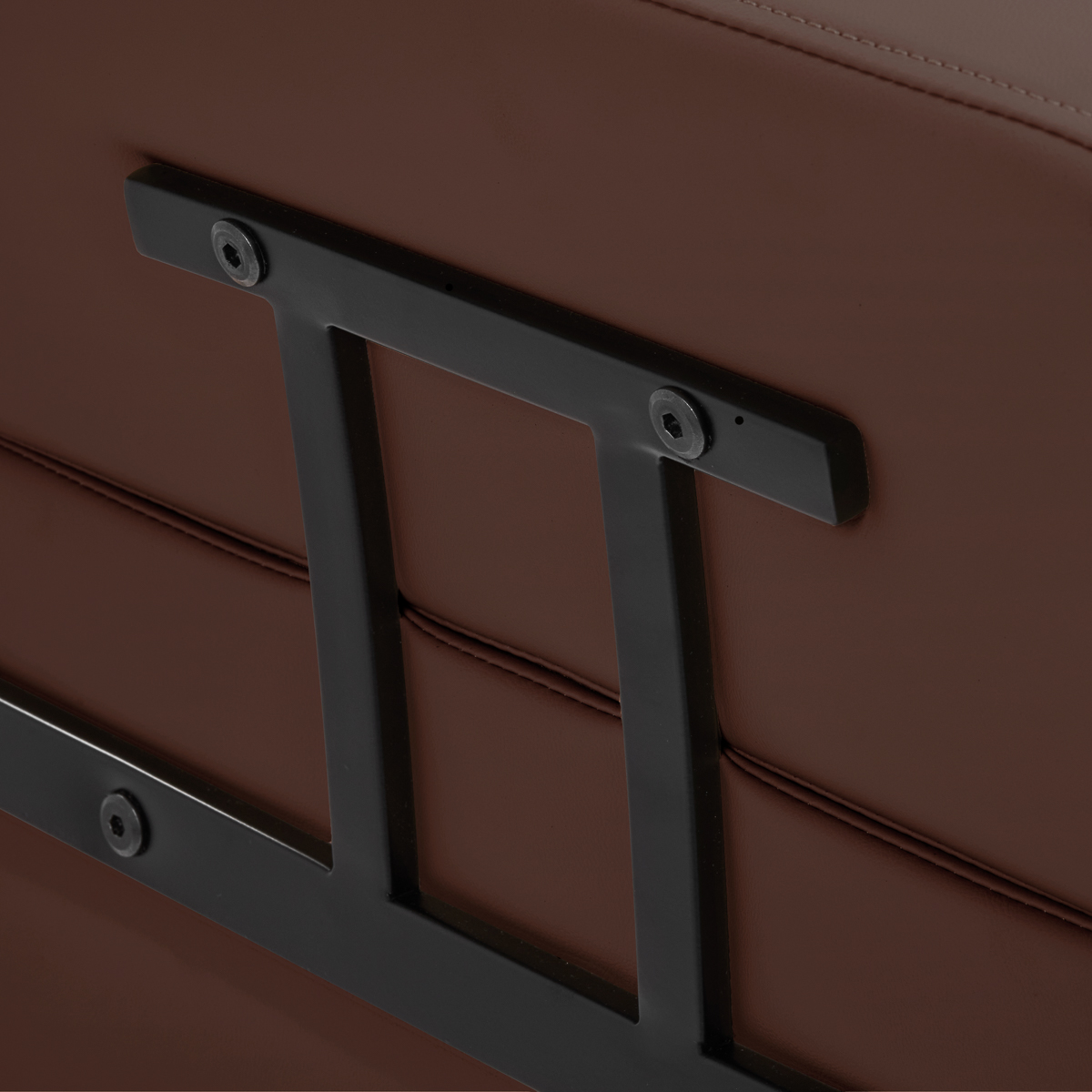 Trwały podnośnik hydrauliczny pozwala dostosować poziom siedziska w granicach 49-61 cm – nawet w momencie, gdy klient siedzi na fotelu. Zapewnia bardziej ergonomiczną pracę, umożliwiając dopasowanie poziomu siedziska do wzrostu zarówno klienta, jak i fryzjera. Ciekawe wizualnie oparcie pozwala na zajęcie dogodnej pozycji, zapewniając doskonałe wsparcie pleców, co ma znaczenie zwłaszcza w przypadku wielogodzinnych zabiegów. Dużym plusem tego modelu jest otwór pozostawiony pomiędzy oparciem a siedziskiem. Ułatwia on zachowanie czystości w salonie, pozwalając w łatwy sposób wymieść włosy z każdego zakamarka fotela. Pozwala to usprawnić przygotowanie stanowiska pracy pomiędzy klientami.