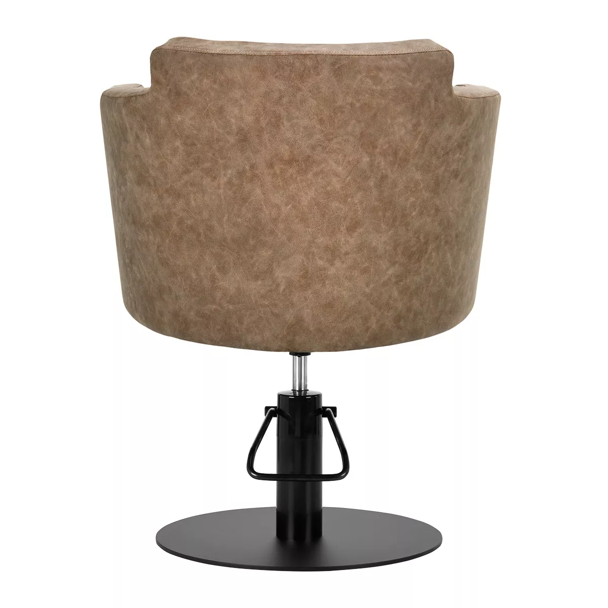 Regulacja wysokości odbywa się przy użyciu trwałego podnośnika hydraulicznego, który pozwala dostosować poziom siedziska w granicach 50-63 cm – nawet w momencie, gdy klient siedzi na fotelu. Gwarantuje to bardziej ergonomiczną pracę, zapewniając możliwość swobodnego dopasowania poziomu fotela do wzrostu zarówno klienta, jak i fryzjera. Odpowiednio wyprofilowane oparcie obite jest skórą syntetyczną i pozwala na zajęcie dogodnej pozycji. Zapewnia to doskonałe wsparcie dla pleców, co ma znaczenie zwłaszcza w przypadku zabiegów trwających wiele godzin.