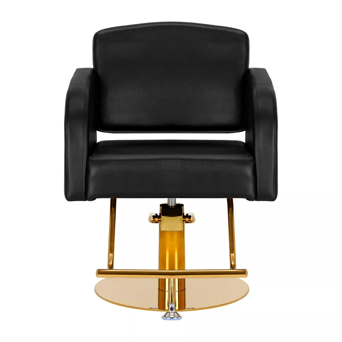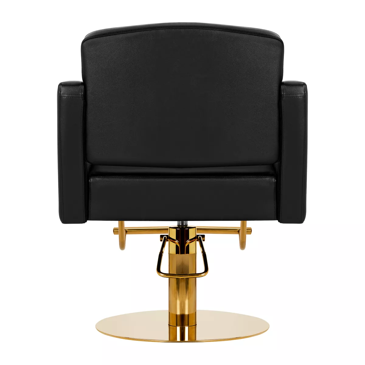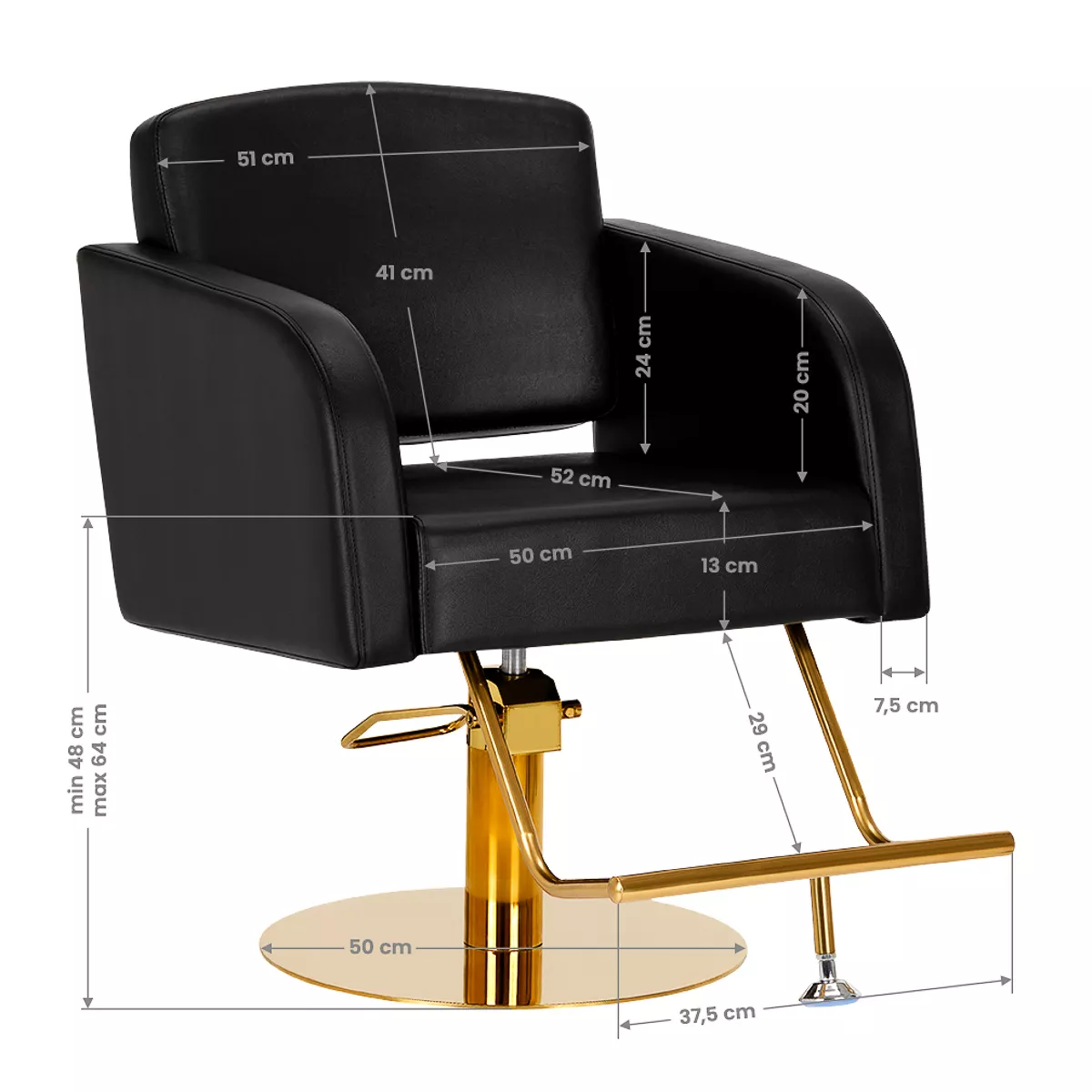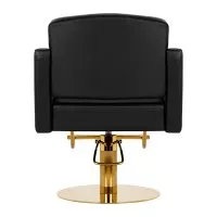 Wygodny mebel wypełniony jest odporną na odkształcenia pianką, z kolei obicie wykonane zostało z przyjemnej w dotyku skóry syntetycznej. Zastosowane materiały zapewniają komfortowe użytkowanie przez długi czas i sprawiają, że sprzęt jest odporny na wilgoć, wytrzymały oraz łatwy do utrzymania w czystości. Pokrycie w odcieniach czerni oraz elementy w barwach złota nadają mu wyraz ponadczasowej elegancji. Fotel fryzjerski Gabbiano Turyn wyróżnia prosty design, co sprawia, że fotel będzie doskonale prezentować się w wielu profesjonalnych salonach.