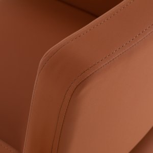 Zaokrąglone linie fotela wprowadzają lekkość i nowoczesną estetykę, a stabilna, kwadratowa podstawa w matowej czerni podkreśla stylowy wygląd. Przyjemna w dotyku skóra syntetyczna w odcieniach brązu zapewnia wygodę nawet podczas długich zabiegów, a przy tym gwarantuje trwałość, odporność na wilgoć oraz łatwość czyszczenia. Fotel pasuje zarówno do nowoczesnych, jak i klasycznych aranżacji, podkreślając profesjonalny wizerunek salonu.