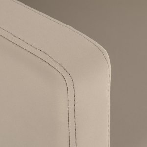 Zaokrąglone linie fotela wprowadzają lekkość i nowoczesną estetykę, a stabilna, kwadratowa podstawa w matowej czerni podkreśla stylowy wygląd. Przyjemna w dotyku skóra syntetyczna w odcieniach szarości i beżu zapewnia wygodę nawet podczas długich zabiegów, a przy tym gwarantuje trwałość, odporność na wilgoć oraz łatwość czyszczenia. Fotel pasuje zarówno do nowoczesnych, jak i klasycznych aranżacji, podkreślając profesjonalny wizerunek salonu.