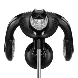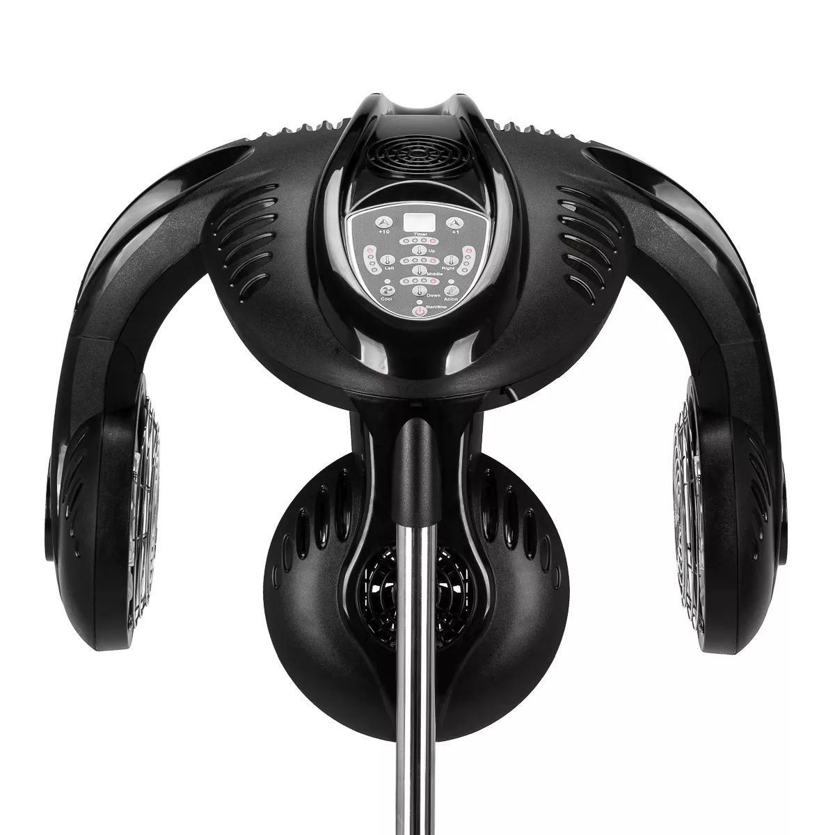 Futurystyczna obudowa wykonana z trwałego tworzywa sztucznego w odcieniach czerni nadaje urządzeniu nowoczesnego i wyjątkowego wyglądu, dzięki czemu wpasuje się w większość wnętrz. Dodatkowo jest trwały i łatwy do czyszczenia. Stabilność zapewnia czteroramienna podstawa, która jest wyposażona w kółka, gwarantujące mobilność. Regulowany w zakresie 142-162 cm statyw gwarantuje komfortową pracę i dostosowanie urządzenia do indywidualnych potrzeb.
