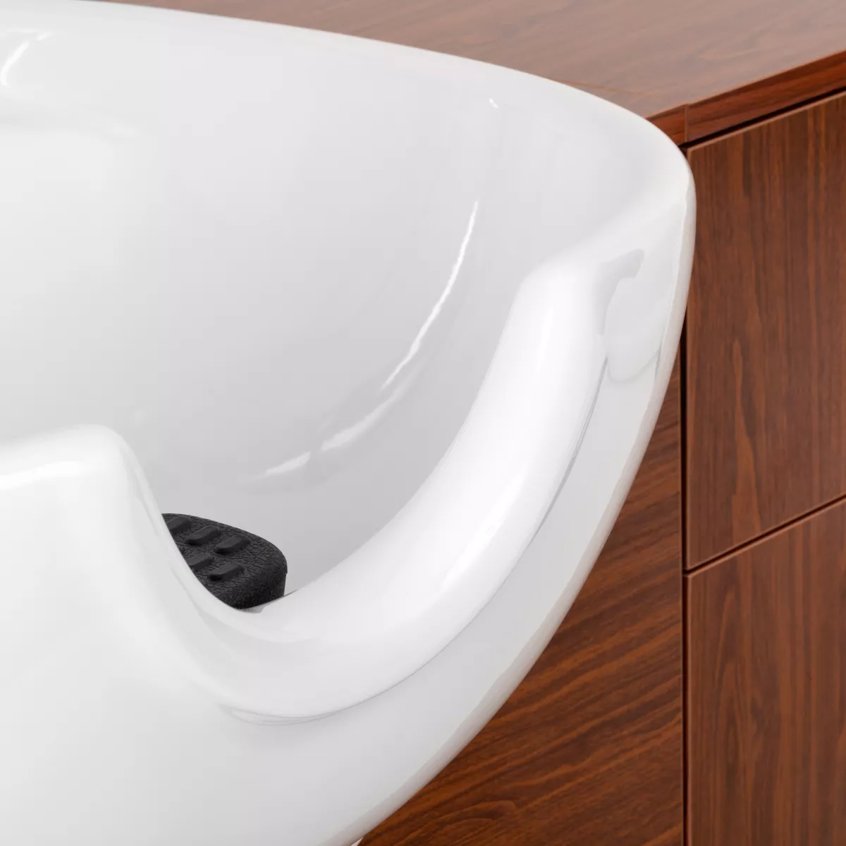 - Wbudowana umywalka ułatwia utrzymanie higieny i oszczędza miejsce.