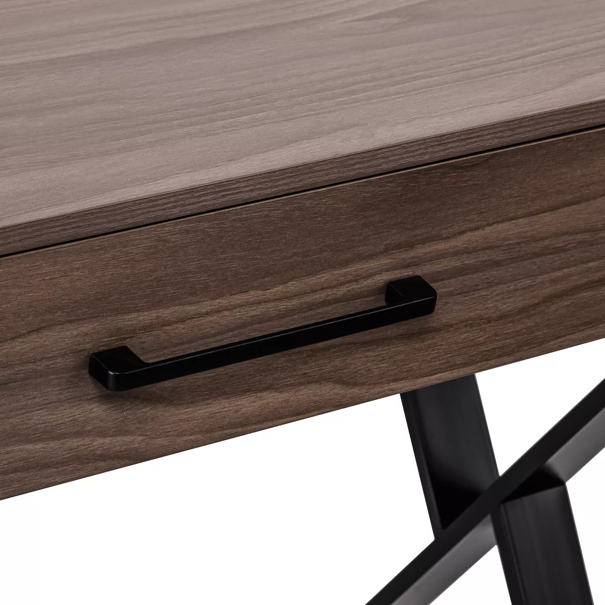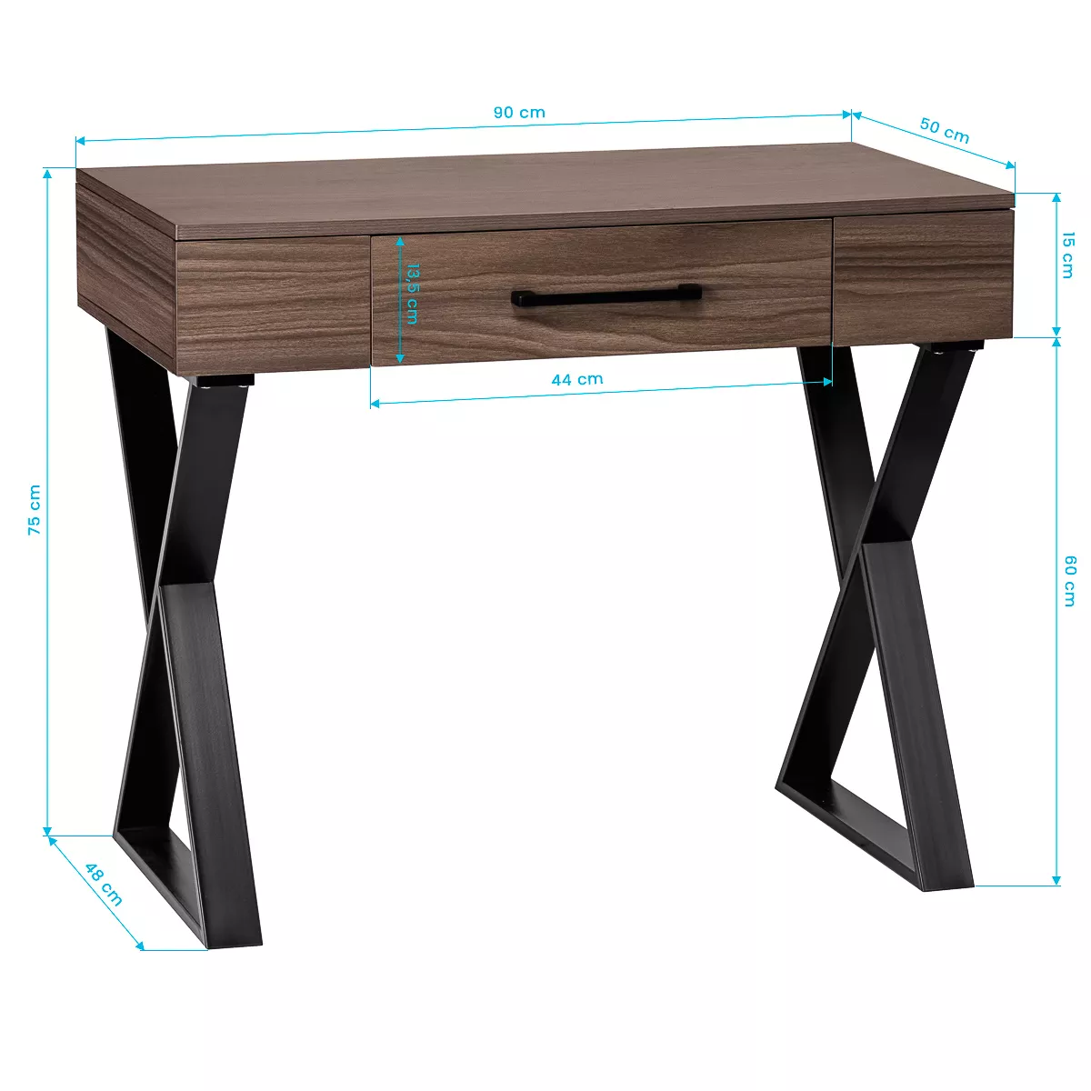 Metalowe nogi w kształcie litery X o matowym wykończeniu tworzą solidne podparcie, a jednocześnie nadają konstrukcji lekkości i nowoczesnego wyrazu. Blat w odcieniach ciemnego drewna pięknie kontrastuje z czarną podstawą, podkreślając industrialny styl. Konsola fryzjerska Gabbiano to przemyślany wybór dla stylistów, którzy cenią połączenie designu i komfortu użytkowania. Idealny wybór do salonów stawiających na nowoczesny wystrój i komfort pracy.