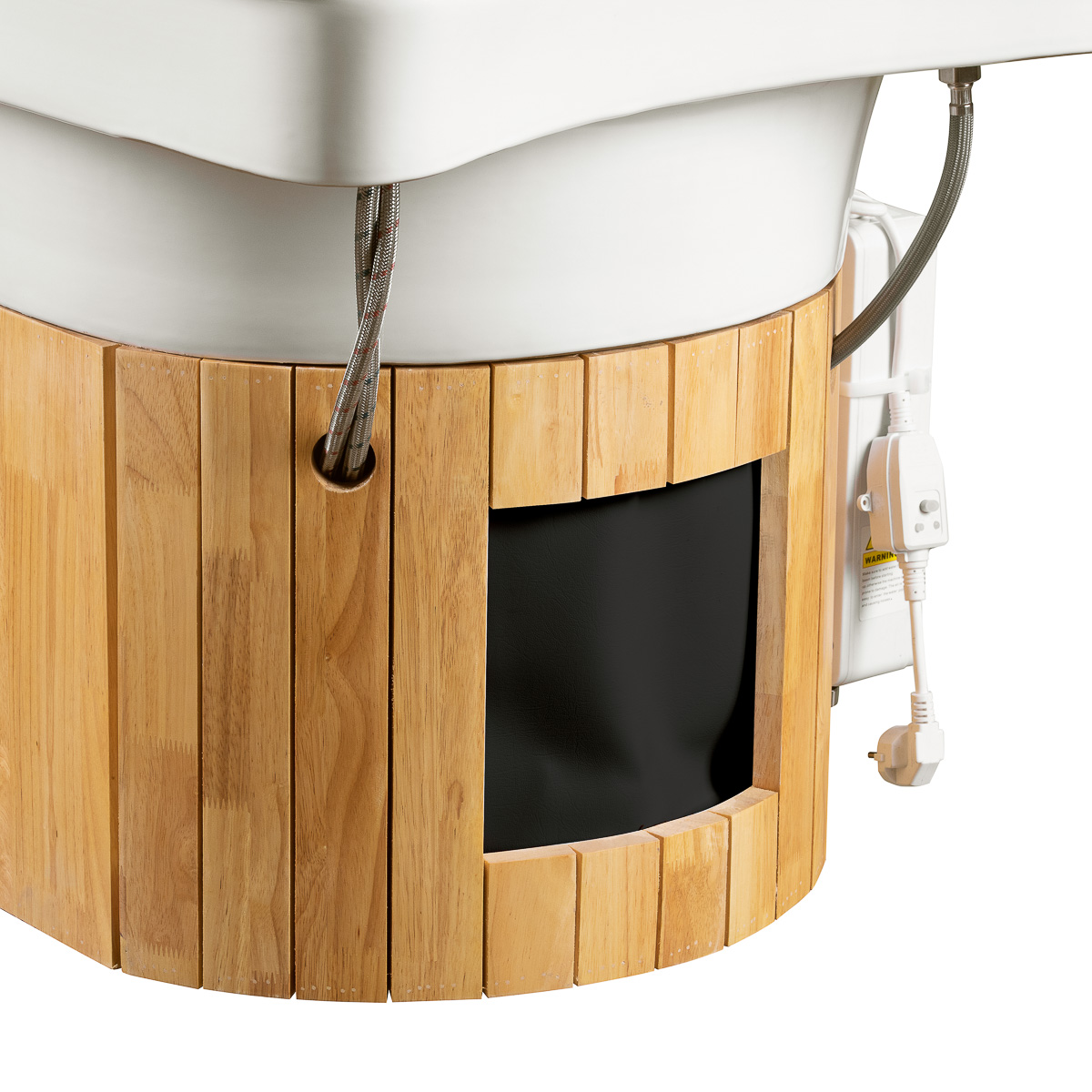 Elegancka leżanka ze zintegrowaną myjnią Gabbiano Head Spa Bali to innowacyjne rozwiązanie do wykonywania luksusowych zabiegów pielęgnacyjnych i relaksacyjnych. Doskonale sprawdza się przy japońskim Head SPA, hydroterapii, masażu wodnym, aromaterapii czy terapii parowej, zapewniając holistyczne doświadczenie pielęgnacyjne. Dodatkowo, sprawdza się również przy masażu ciała, oferując wszechstronne możliwości terapeutyczne i odprężające. Zaawansowane technologie i ergonomiczny design zapewniają nie tylko niezrównany komfort klientom, ale także ułatwiają pracę specjalistom w branży beauty & wellness. Połączenie naturalnej drewnianej konstrukcji z miękką tapicerką w kolorze czerni nadaje całości elegancji i gwarantuje komfort użytkowania.