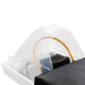 Głęboka ceramiczna misa w odcieniach bieli skutecznie ogranicza rozchlapywanie wody oraz preparatów stosowanych podczas zabiegów, zapewniając czystość i wygodę pracy. Wykonana z trwałego materiału misa jest odporna na przebarwienia, zarysowania i uszkodzenia, a jej gładka powierzchnia sprawia, że utrzymanie czystości jest wyjątkowo łatwe. Jej charakterystyczne wyprofilowanie nie tylko ułatwia dostęp osobie wykonującej usługę, ale także nadaje myjni elegancki i nowoczesny wygląd. Połączenie estetyki z funkcjonalnością podnosi standard każdej profesjonalnej przestrzeni.