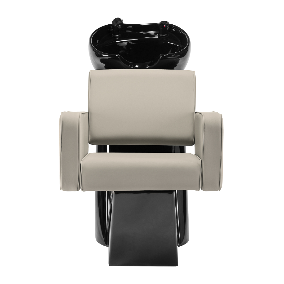 Myjnia fryzjerska Gabbiano Bilbao łączy funkcjonalność, komfort i subtelną elegancję, doskonale wpisując się w wystrój nowoczesnych salonów. Charakteryzuje się prostą formą z miękko zaokrąglonymi liniami – kwadratowe siedzisko i podłokietniki o łagodnych krawędziach nadają meblowi minimalistyczny, a zarazem przyjazny wygląd. Zintegrowana konstrukcja zapewnia stabilność, a ergonomiczny kształt fotela gwarantuje wygodę klienta i komfort pracy fryzjera. Nowoczesny design myjni podkreśla profesjonalny charakter przestrzeni, tworząc spójną i stylową całość.