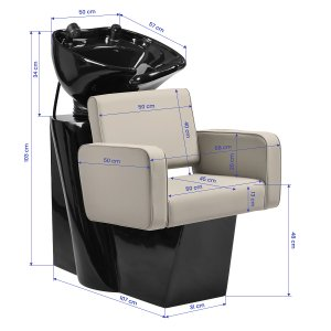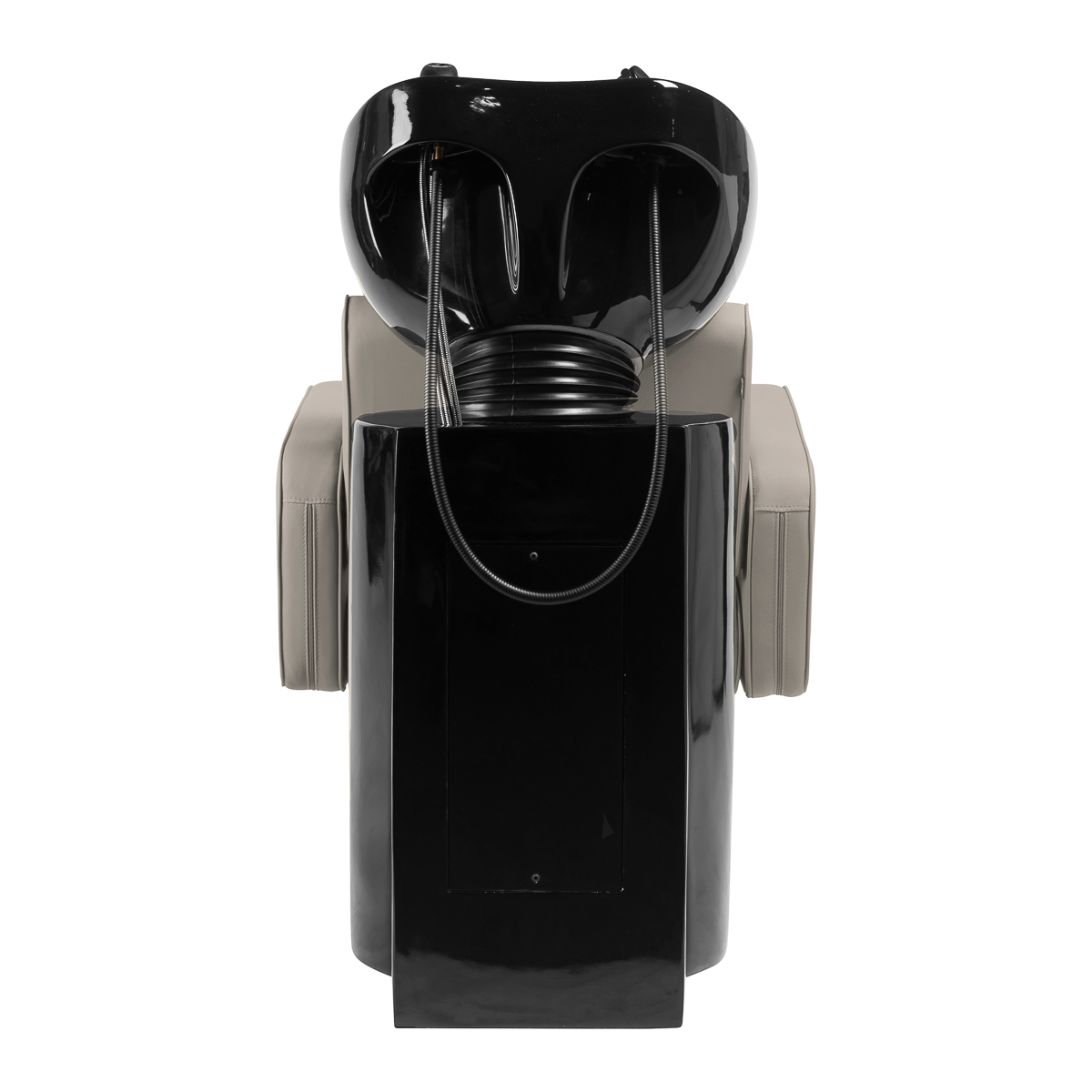 Głęboka ceramiczna misa w odcieniach czerni minimalizuje rozchlapywanie wody i kosmetyków podczas zabiegów. Regulowany kąt nachylenia misy umożliwia precyzyjne dopasowanie jej położenia do potrzeb klienta. Wykonana z trwałego materiału, jest odporna na przebarwienia, zarysowania i działanie środków chemicznych, a jej gładka powierzchnia ułatwia utrzymanie czystości. Ergonomicznie wyprofilowany kołnierz gwarantuje wygodne podparcie głowy, zapewnia wygodne podparcie głowy, natomiast czarna nakładka z tworzywa sztucznego eliminuje uczucie chłodu przy kontakcie z ceramiką.