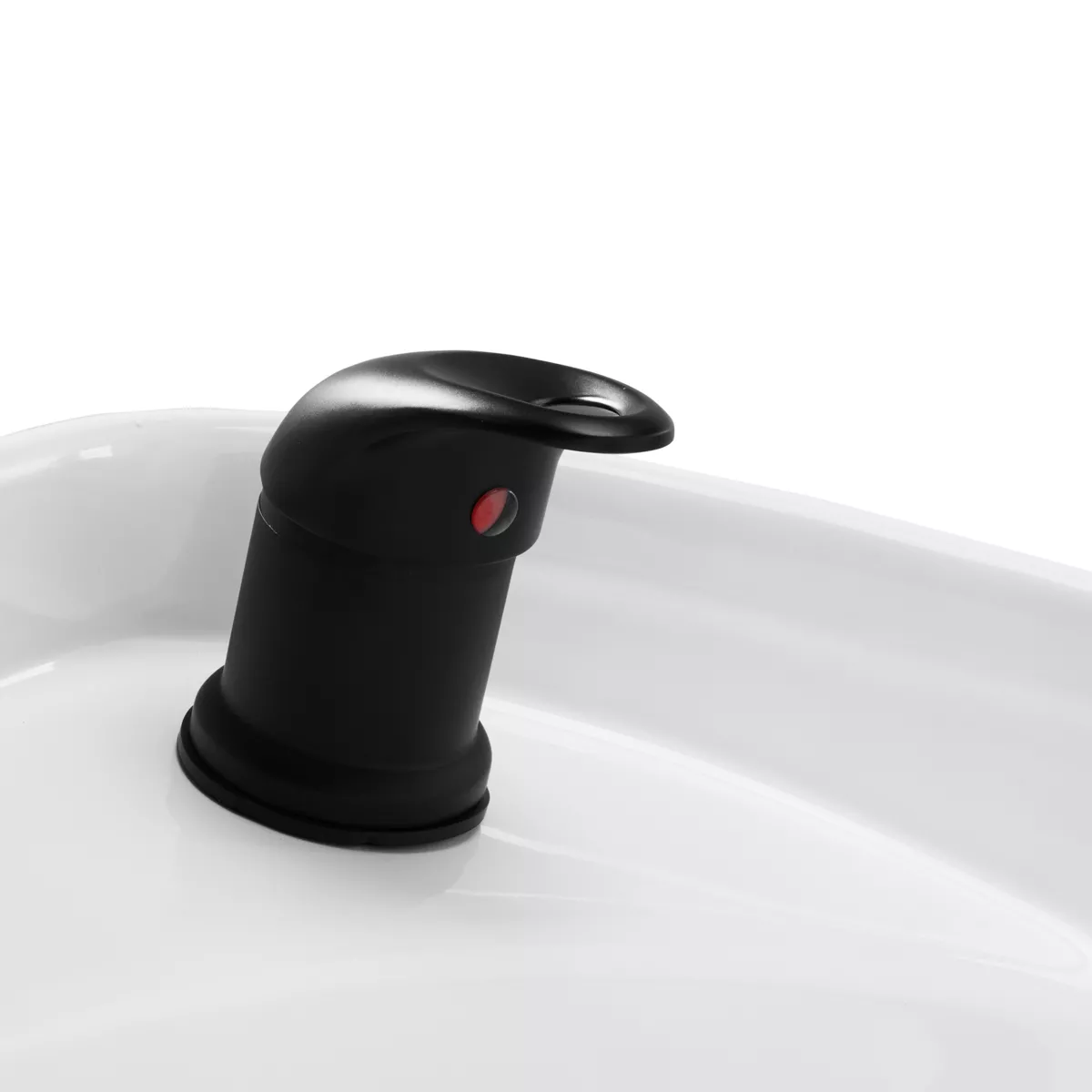 Biała ceramiczna misa umywalki o odpowiedniej głębokości zapobiega nadmiernemu rozchlapywaniu wody oraz używanych w trakcie zabiegu produktów. Pozwala to na komfortowe i efektywne wykonywanie szerokiej gamy usług. Kąt nachylenia misy można dostosowywać, dzięki czemu łatwo o dopasowanie do indywidualnych potrzeb. Zastosowany materiał wysokiej jakości sprawia, że umywalka jest wytrzymała, odporna na przebarwienia i zadrapania oraz bardzo łatwa do czyszczenia. Odpowiednio wyprofilowany kołnierz oraz nachylone oparcie zapewniają wsparcie i wygodę w trakcie mycia włosów.