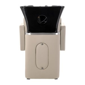 Myjnia wyposażona w baterię z mieszaczem, która umożliwia łatwy dostęp do ciepłej i zimnej wody, pozwalając na precyzyjne dopasowanie temperatury do indywidualnych preferencji klienta. Praktyczne miejsce na odłożenie słuchawki ułatwia pracę, a korek ze specjalnym sitkiem pozwala kontrolować przepływ wody i utrzymywać wysokie standardy higieny w salonie. Przyłącze wody umieszczono wewnątrz podstawy, dzięki czemu instalacja pozostaje dyskretnie ukryta, co wpływa na estetykę i porządek stanowiska pracy. Ergonomiczny kształt myjni zapewnia wygodę podczas wykonywania różnorodnych zabiegów, a przemyślane połączenie funkcjonalności i detali sprawia, że codzienna praca w salonie staje się jeszcze bardziej komfortowa.