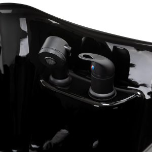 Ceramiczna misa umywalki w odcieniach czerni, o nowoczesnym kształcie i odpowiedniej głębokości, skutecznie zapobiega rozchlapywaniu wody oraz produktów używanych podczas zabiegów, umożliwiając komfortowe i efektywne wykonywanie szerokiej gamy usług. Odpowiednio wyprofilowany kołnierz oraz nachylone oparcie zapewniają wygodę i wsparcie podczas mycia włosów, a nakładka z tworzywa sztucznego w odcieniach czerni chroni klienta przed chłodem ceramicznej powierzchni, gwarantując przyjemne doznania w trakcie zabiegu.