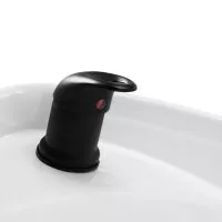 Praktyczna myjnia wyposażona została w baterię z mieszaczem, co zapewnia swobodny dostęp do ciepłej oraz zimnej wody. Ułatwia to dopasowanie temperatury do indywidualnych preferencji klienta. Dedykowane miejsce na odłożenie słuchawki usprawnia pracę, a chromowany korek ze specjalnym sitkiem pozwala na kontrolę przepływu wody oraz utrzymanie wysokich standardów higieny w salonie. Przyłącze wody zostało umieszczone wewnątrz podstawy, umożliwiając sprawne ukrywanie rur. Znacznym plusem tego modelu jest otwór pozostawiony pomiędzy oparciem a siedziskiem, który ułatwia zachowanie czystości w salonie, pozwalając w łatwy sposób wymieść zabrudzenia z każdego zakamarka fotela. Myjnia wyprofilowana została w taki sposób, by zapewniać wygodę podczas wykonywania różnorodnych zabiegów, gwarantując odpowiednie wsparcie pleców. Połączenie funkcjonalności i udogodnień sprawia, że praca w salonie fryzjerskim jest jeszcze bardziej komfortowa.