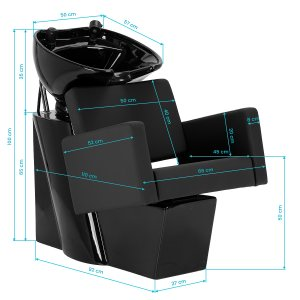 Głęboka ceramiczna misa w odcieniach czerni minimalizuje rozchlapywanie wody i kosmetyków podczas zabiegów. Regulowany kąt nachylenia misy umożliwia precyzyjne dopasowanie jej położenia do potrzeb klienta. Wykonana z trwałego materiału, jest odporna na przebarwienia, zarysowania i działanie środków chemicznych, a gładka powierzchnia ułatwia utrzymanie czystości. Ergonomicznie wyprofilowany kołnierz zapewnia wygodne podparcie głowy, a czarna nakładka z tworzywa sztucznego eliminuje uczucie chłodu przy kontakcie z ceramiką.