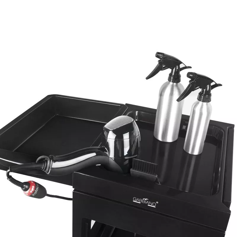 Przedstawiamy Gabbiano pomocnik fryzjerski 048A w kolorze czarnym – niezastąpiony element wyposażenia każdego nowoczesnego salonu fryzjerskiego. Dzięki swojej funkcjonalności i eleganckiemu designowi, ten mobilny stolik zapewni wygodę i porządek podczas codziennej pracy.