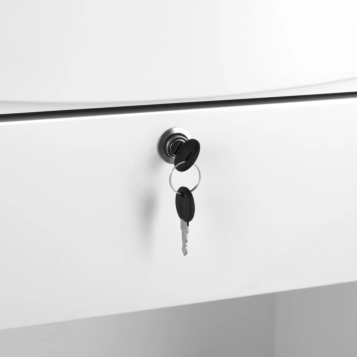 W praktycznym blacie – który stwarza doskonałą przestrzeń na niezbędne przedmioty, takie jak telefon, akcesoria biurowe czy kalendarz – znajduje się dedykowany otwór na przewody, co pozwala na swobodne podłączenie komputera i innych potrzebnych sprzętów. Przemyślane rozwiązania oraz odpowiednie rozmieszczenie półek zapewniają ogromne możliwości dopasowania recepcji do indywidualnych potrzeb.