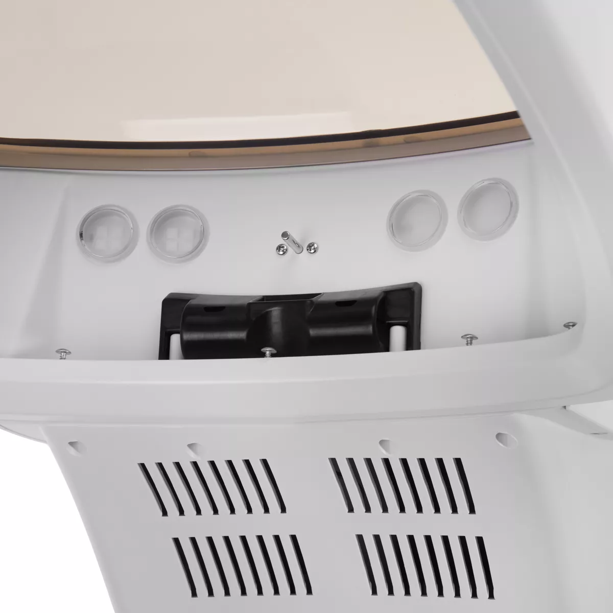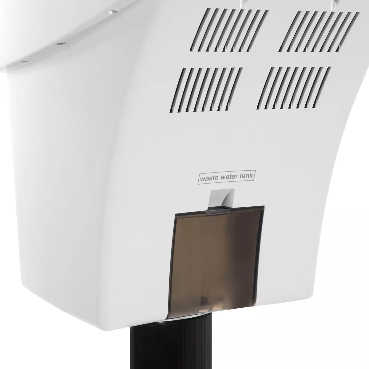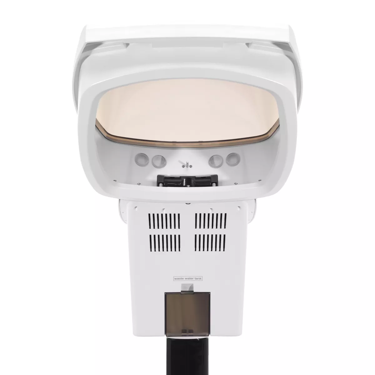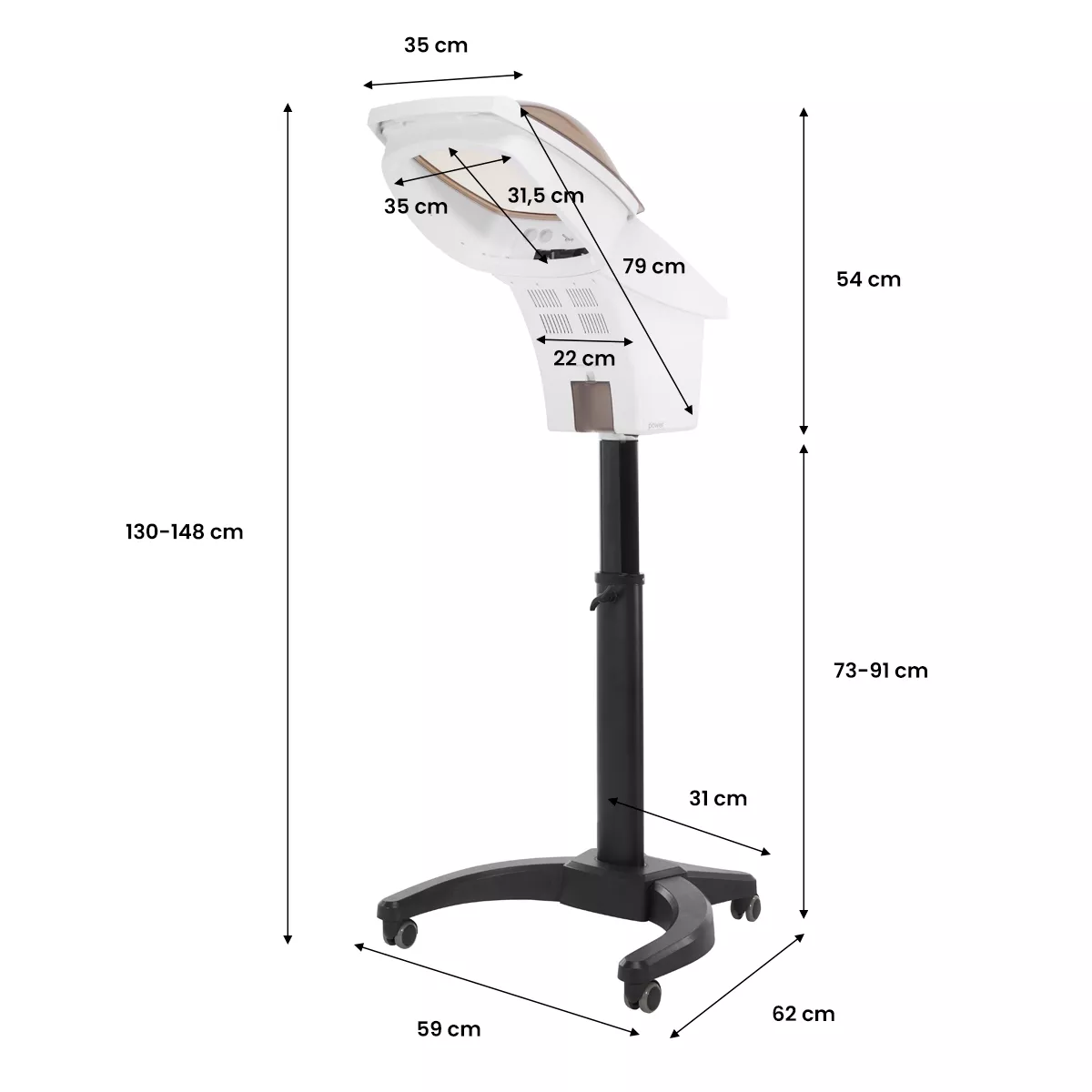 Obudowa z tworzywa sztucznego w odcieniach bieli sprawia, że urządzenie jest trwałe oraz łatwe do utrzymania w czystości. Otwierana kopuła znacząco usprawnia czyszczenie produktu. Stojak z prostą, manualną regulacją w zakresie 18 cm wyposażony jest w podstawę z praktycznymi kółkami, co pozwala na łatwe przestawianie urządzenia w dowolnym momencie.