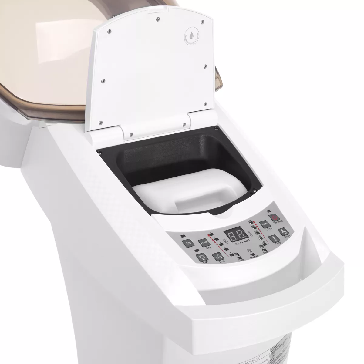 Elektroniczna regulacja parametrów znacznie ułatwia pracę fryzjera. Urządzenie wyposażone jest w intuicyjny panel sterowania z czytelnym wyświetlaczem cyfrowym, co gwarantuje prostą obsługę. Program pracy można dostosowywać indywidualnie w zależności od potrzeb lub skorzystać z jednej z trzech zaprogramowanych opcji. W łatwy sposób reguluje się natężenie wytwarzanej pary w pięciu poziomach, temperatury między 45 a 65 °C oraz czasu w zakresie 1-99 minut. Sauna wyposażona jest także w funkcję ozonowania oraz terapii światłem, które można włączyć w dowolnym momencie. Trzy zaprogramowane tryby zostały przygotowane, by jak najbardziej usprawnić pracę fryzjera. Są to programy: