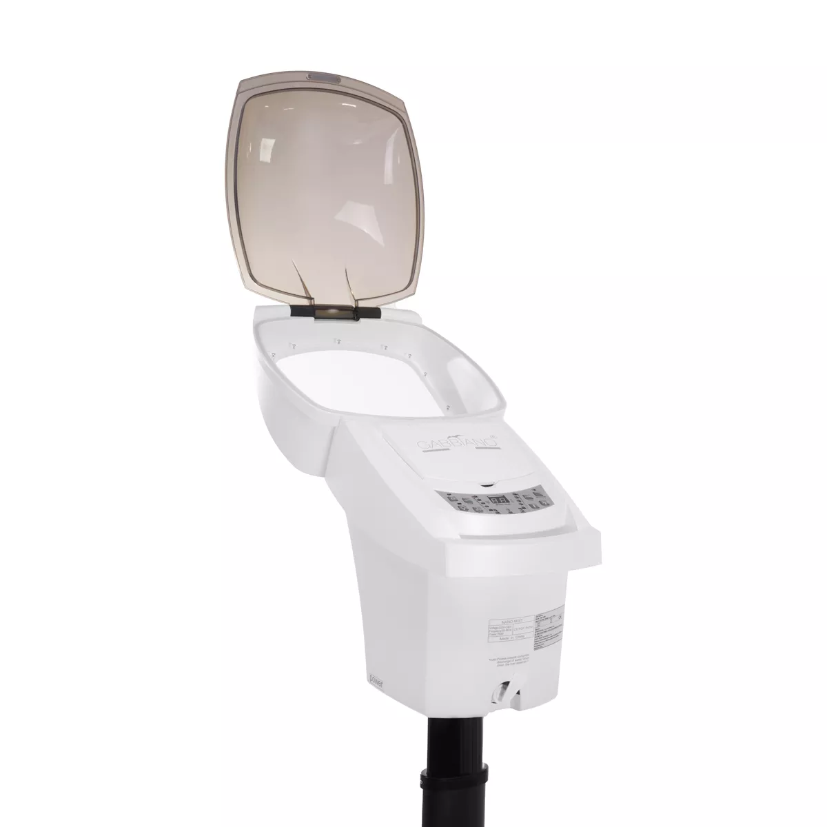 Stojąca sauna fryzjerska Gabbiano 408D to innowacyjne urządzenie służące do głębokiego nawilżania, odbudowy i odżywienia włosów. Para wodna wytwarzana przez urządzenie sprawia, że łuski włosów rozszerzają się, co ułatwia dokładniejsze wchłanianie substancji zawartych w różnego rodzaju preparatach fryzjerskich do wewnątrz. Aktywny ozon wspiera oczyszczanie włosów, eliminuje zapach używanych w trakcie zabiegów fryzjerskich produktów chemicznych i poprawia ukrwienie skóry głowy.