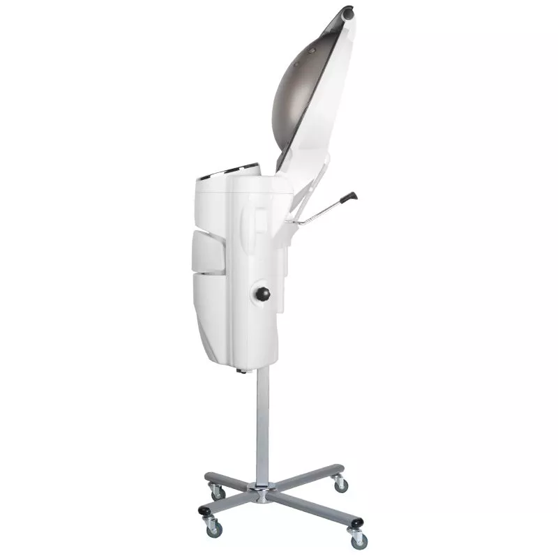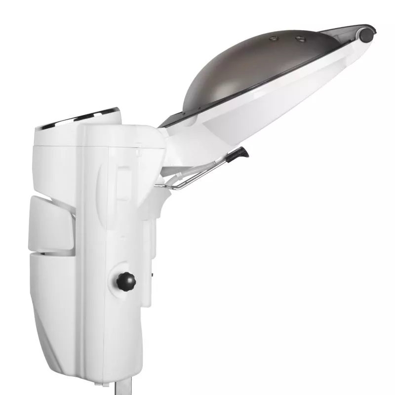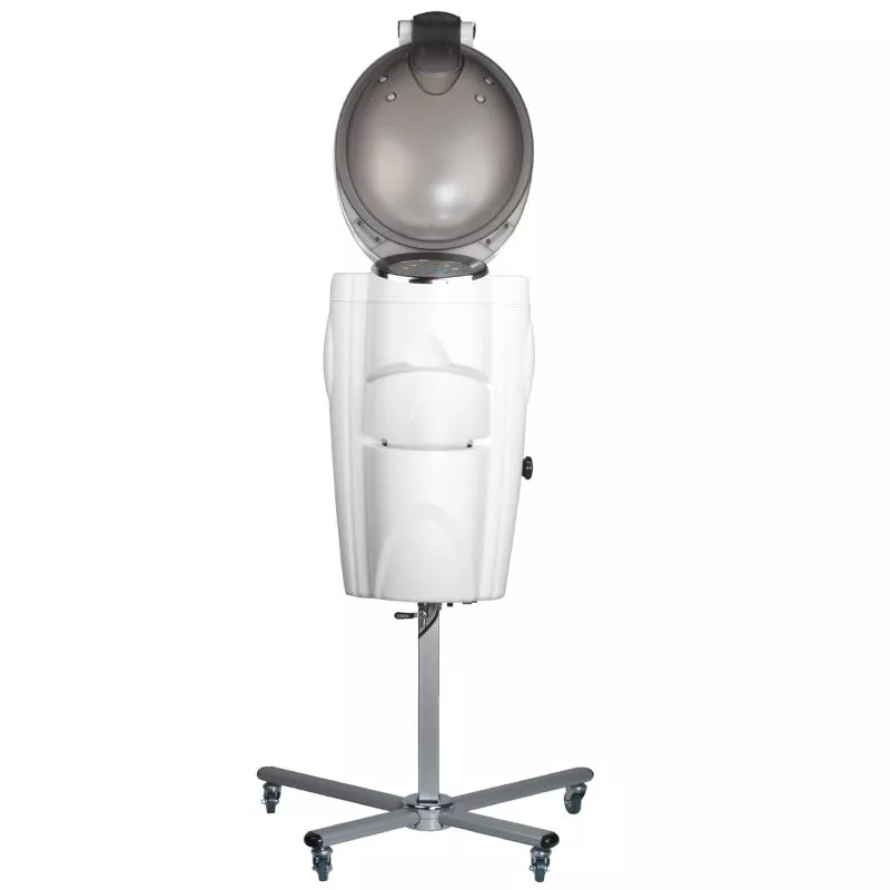 Sauna fryzjerska Gabbiano z aktywnym ozonem to doskonałe rozwiązanie dla profesjonalnych salonów fryzjerskich, które pragną zaoferować swoim klientom najwyższej jakości zabiegi odbudowy włosów. Elegancka, biała konstrukcja na statywie z regulowaną wysokością pozwala na precyzyjne dopasowanie urządzenia do potrzeb użytkownika.